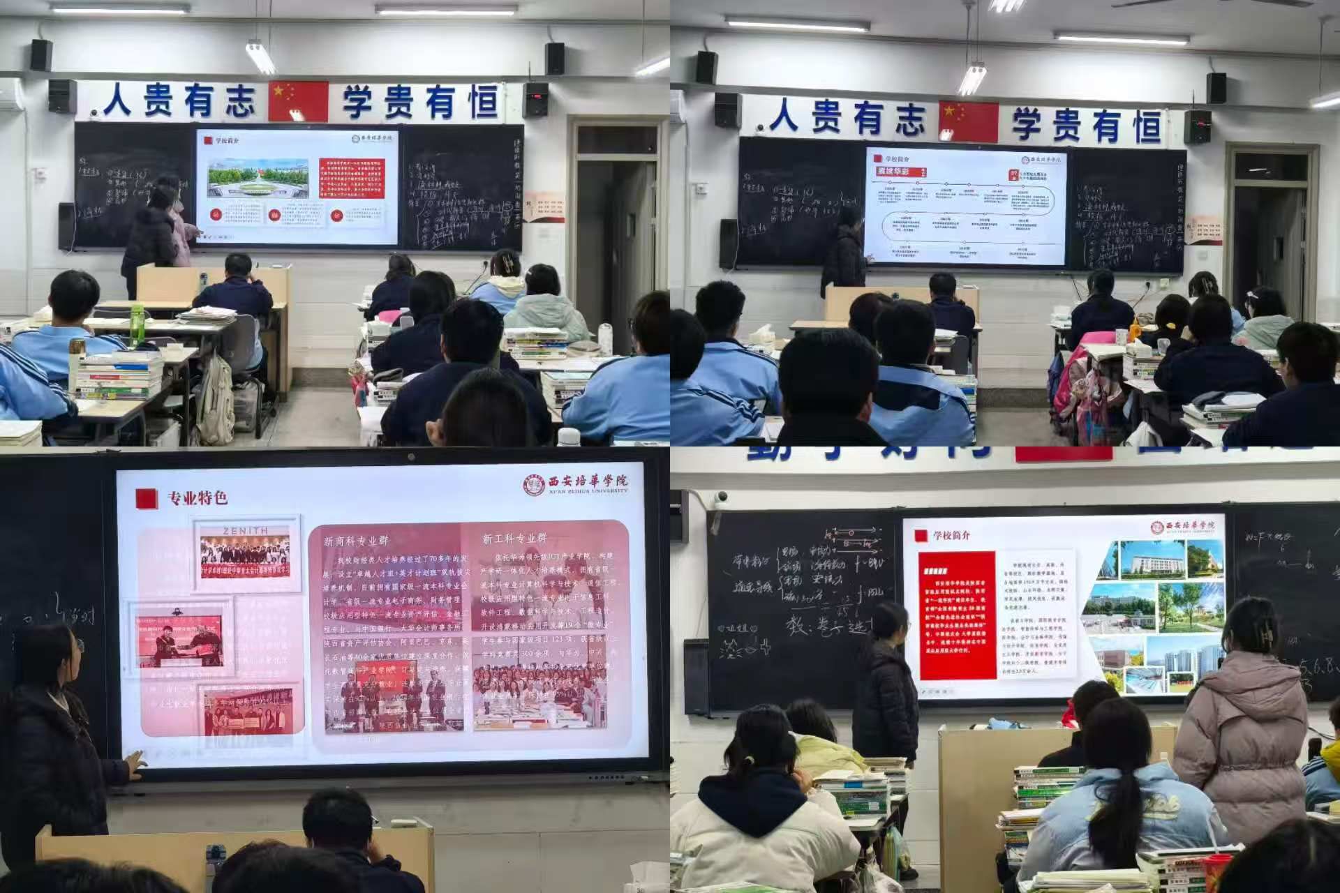 随后的宣讲活动在高三班级拉开帷幕,主讲人雍若彤同学以“我的培华成长记”为切入点,通过精心制作的PPT与校园宣传片,全方位展示西安培华学院办学底蕴、学科优势、校园文化与就业前景。从百余年办学历史的文化积淀,到现代化的教学设施与实训平台;从特色专业课程设置,到创新创业实践与奖学金政策,生动的案例与详实的数据,让学弟学妹们对大学生活充满向往。