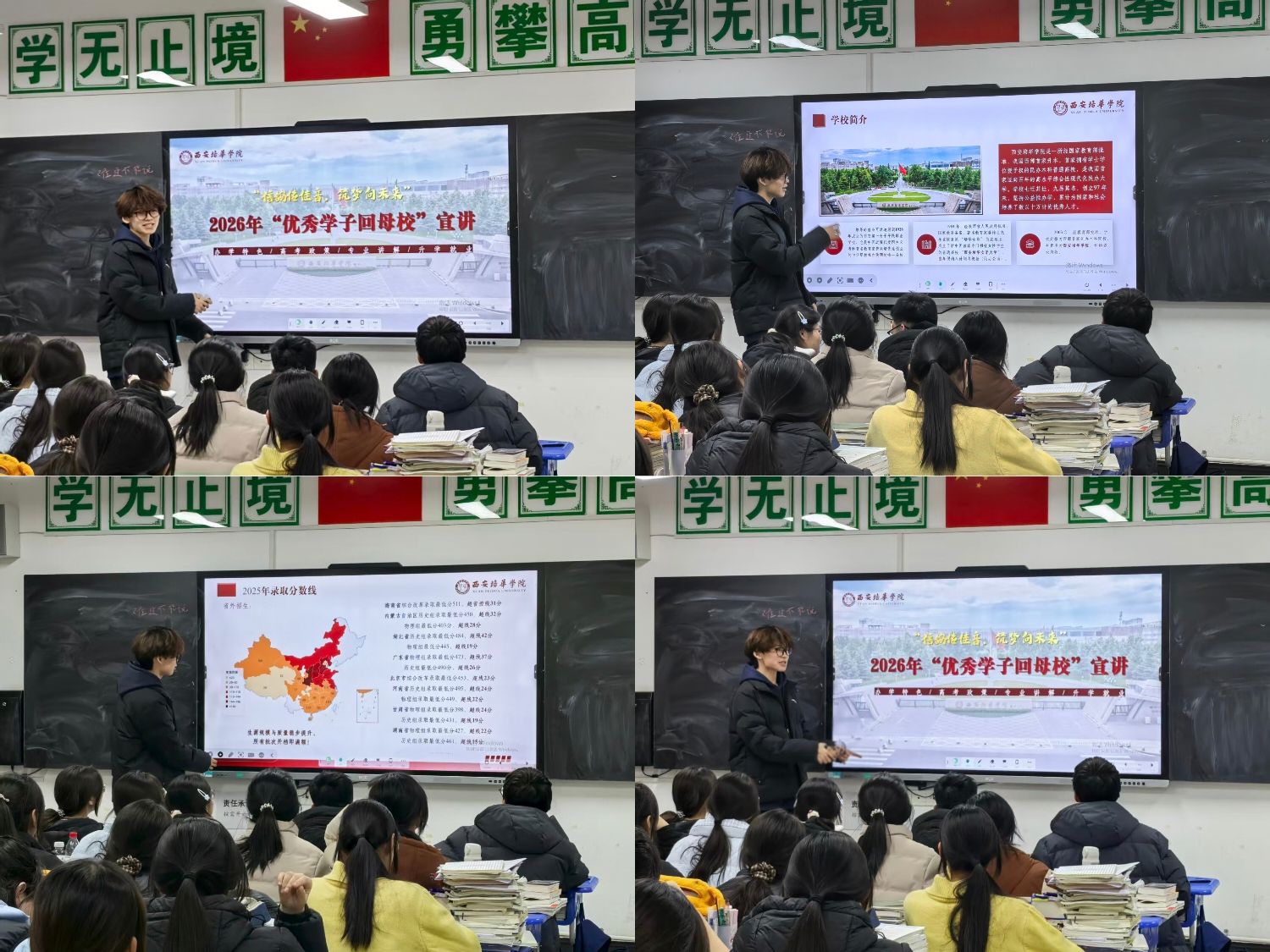 为搭建大学与高中的育人桥梁,西安培华学院会计与金融学院“优秀学子回母校”系列活动正式启动。一批优秀学子怀揣对母校的感恩之心,重返高中校园,以朋辈之姿分享成长经验,传递培华精神,更带着讲好培华故事的使命,用亲身的成长轨迹展现培华的育人氛围与专业优势,为学弟学妹拓展升学发展的多元路径。