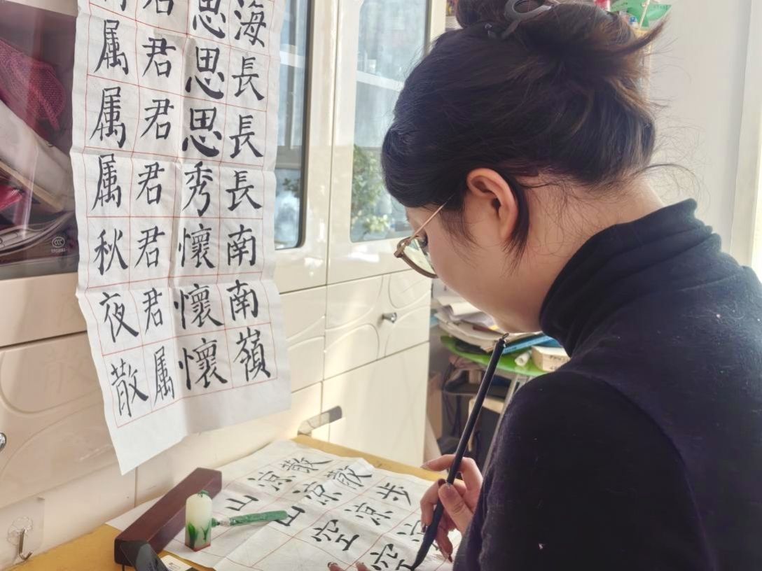 心得体会:这个寒假,我与毛笔字结下了不解之缘。从握笔姿势的反复纠正,到横竖撇捺的精准拿捏,每一笔都凝聚着专注与耐心。当墨香在宣纸间晕染开来,当一个个工整的汉字跃然纸上,我真切感受到书法艺术的独特魅力。一撇一捺皆是风骨,一字一句尽含底蕴,它不仅教会我沉心静气,更让我领略到中华传统文化的博大精深。在笔墨流转间,我学会了欣赏线条之美、结构之韵,美育的种子悄然发芽,让我在喧嚣生活中觅得一份雅致与安宁。
