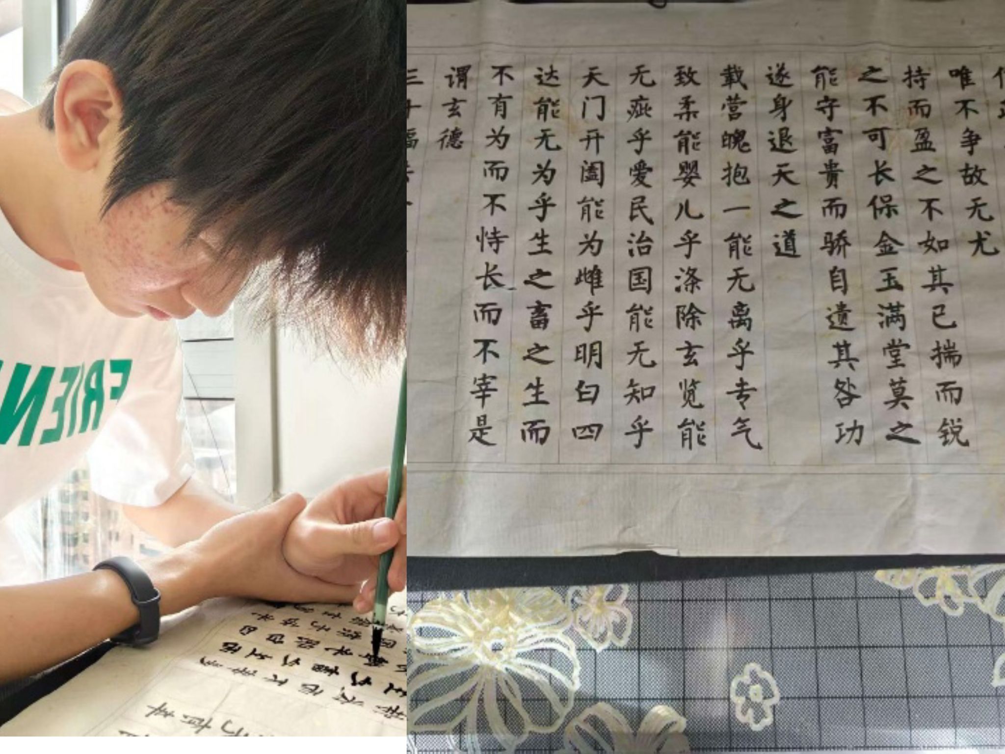 心得体会:寒假独自练习书法的时光,是一段与自己较劲,也与自己和解的旅程。没有老师在旁指点,我便对着字帖反复琢磨,从握笔的姿势到起笔的角度,从行笔的速度到收笔的轻重,每一个细节都要靠自己慢慢摸索。起初,我笔下的字总是不尽人意,横画写不平稳,竖画立不挺拔,结构更是松散凌乱。我曾懊恼地丢下笔,可看着字帖上工整的字迹,又忍不住重新拿起。一遍遍临摹,一次次对比,慢慢摸透了笔画的走势,也找到了字的间架规律。独处的练习时光里,没有外界的打扰,只有笔尖划过宣纸的沙沙声。浮躁的心绪在笔墨间慢慢沉淀,那些因写不好字而生的焦虑,也在日复一日的坚持中消散。如今我再次提笔,笔下的字虽算不上精妙,却也多了几分稳当。原来独自练书法,练的不只是写字的技巧,更是独处时的耐心与坚持,是在无人督促的日子里,依然能沉下心来打磨自己的定力。