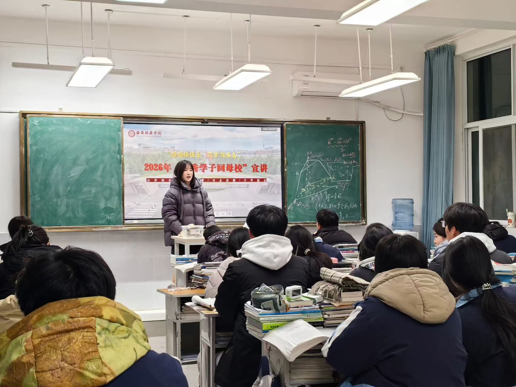 2026年1月28日,西安培华学院会计与金融学院星光宣讲团的成员们在指导老师的带领下,怀揣着对母校的感恩与对学弟学妹的期许,重返高中母校开展“我的成长之路”主题分享交流活动,用亲身经历为学弟学妹们的学业规划与未来发展指引方向。