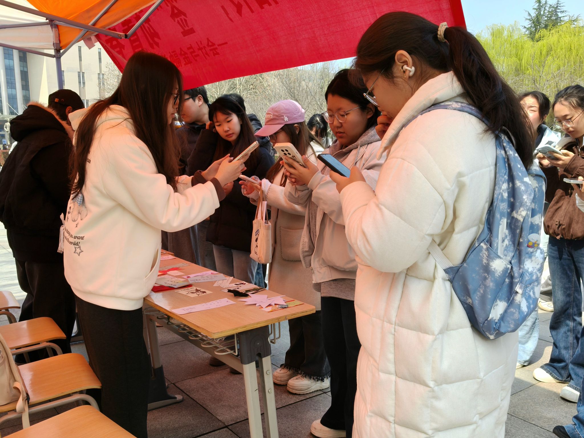 3月10日,优秀作品于综合楼西侧广场集中展出,一枚枚清新雅致、创意十足的书签,以细腻笔触传递温暖力量,吸引了众多师生驻足观赏、细细品读。学院老师们也专程来到展区,认真鉴赏每一件作品,与同学们亲切交流创作初衷与心得,深入探讨雷锋精神的时代内涵,暖心的互动画面更成为展区里一道别样的风景。