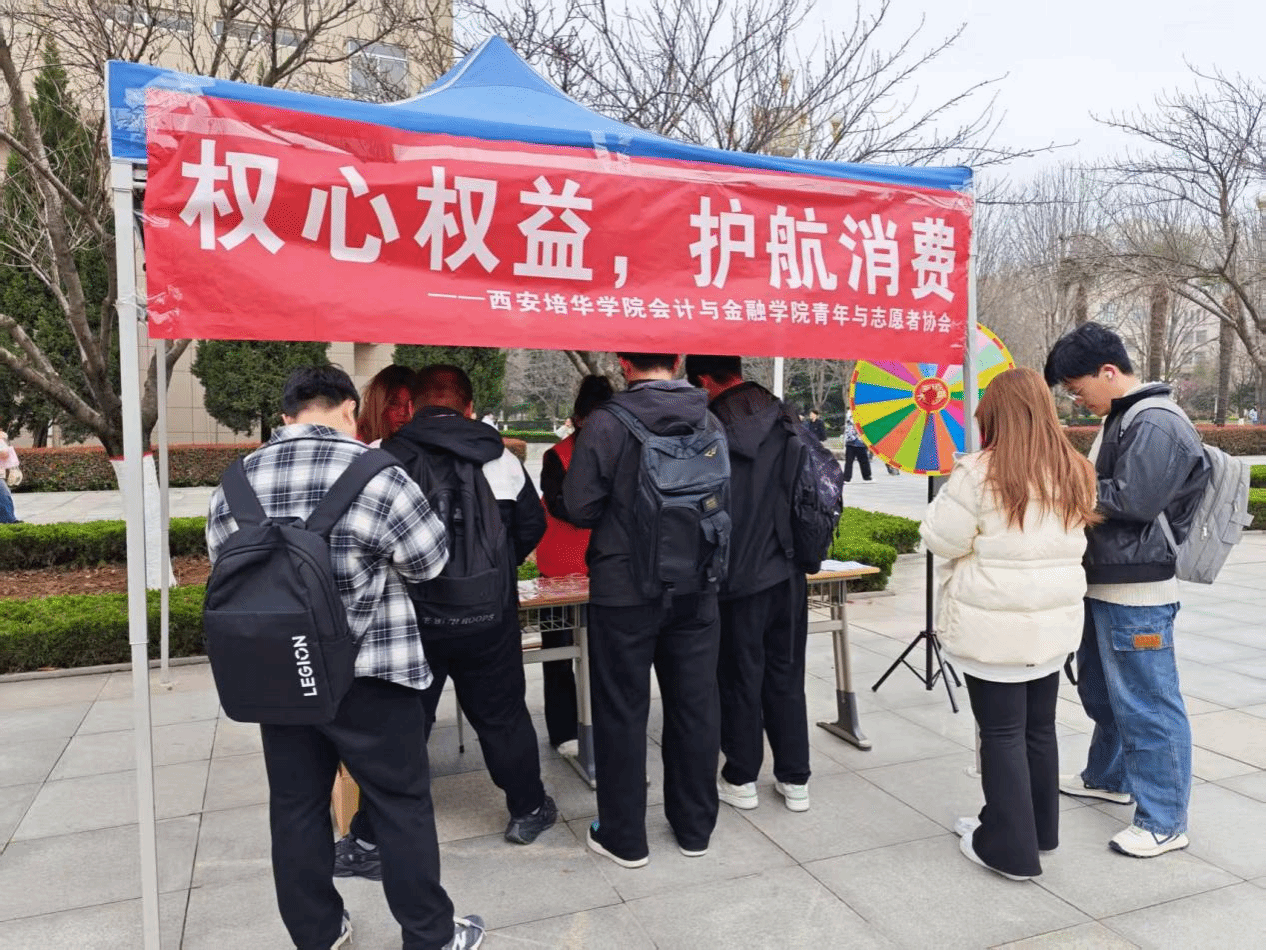 春风送暖,权益护航。在第43个315国际消费者权益日到来之际,为增强大学生消费维权意识,普及消费维权法律知识,有效防范校园消费陷阱,西安培华学院会计与金融学院青年志愿者协会于3月16日在综合楼西广场顺利开展“权心权益,护航消费——做精明的消费者”主题帐篷游园会活动。