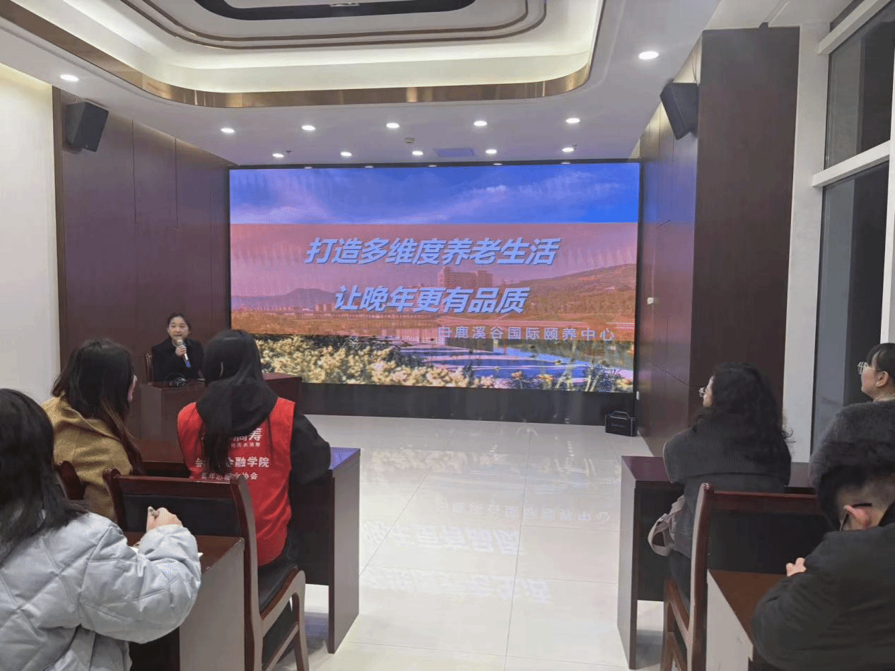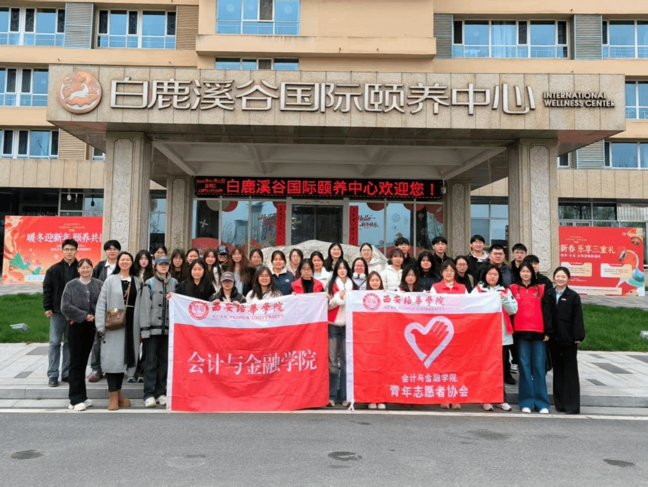 在全国学雷锋志愿服务月的温暖氛围中,为践行青年社会责任,深化校地合作与实践育人,西安培华学院会计与金融学院青年志愿者协会于2026年3月18日,携手陕投康养白鹿溪谷国际颐养中心,顺利开展“产教融合践初心,财智赋能新康养”志愿服务基地揭牌暨暖心慰问活动。由江凤香教授带队,团委副书记王苗、周嫚副教授、付丽伟老师及学生代表共同参加。