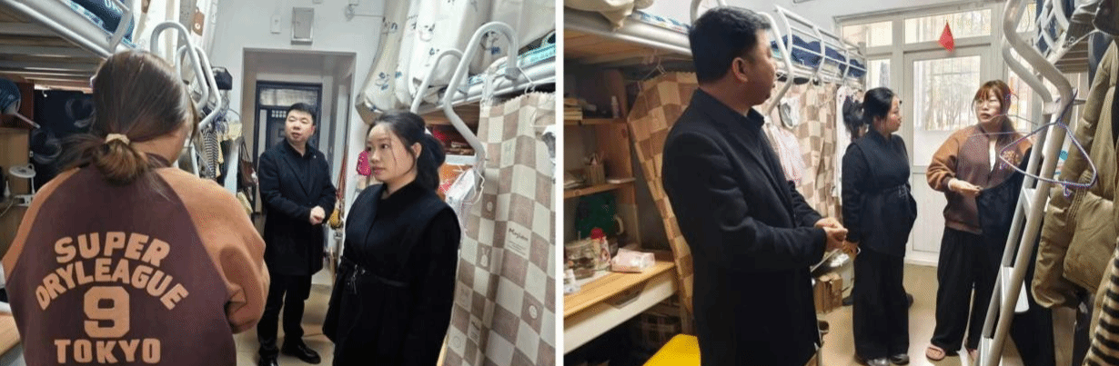 检查过程中,副书记高乐与辅导员们深入每一间宿舍,一边细致排查各类安全隐患,一边与学生亲切交流,详细了解学生的日常生活状态与实际需求,叮嘱同学们增强安全防范意识,自觉遵守宿舍管理规定,养成良好的生活习惯,共同守护自己的“小家”。此次检查发现,学生宿舍整体状况良好,绝大部分宿舍卫生整洁、物品摆放有序,学生生活习惯良好,未发现违规电器、违禁物品等重大安全隐患;12号公寓3层及以上宿舍限位器完好有效,楼栋公共区域设施设备运行正常,阳台物品堆放规范,整体居住环境安全有序。