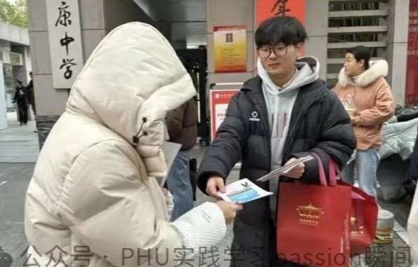 1月3日,学梦归乡途社会实践团队在安康中学门口发放宣传册。面带微笑,向过往的同学和家长热情发放,面对询问,成员们耐心解答,让大家对大学生活充满向往,传递培华学院的魅力。