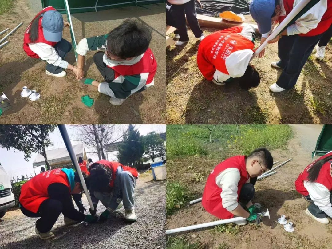 清晨的驿站院落里,志愿者们戴上手套、拿起工具,在工作人员的合理分工下,迅速分组投入协作。志愿者们支起帐篷、挥锹铺沙、搬运狗舍。沙沙声与吆喝声在驿站不断交织着。春日的阳光逐渐炽热,但看着新搭建起的帐篷、铺填平整的沙地、安置妥当的狗舍,志愿者们都露出了欣慰的笑容。