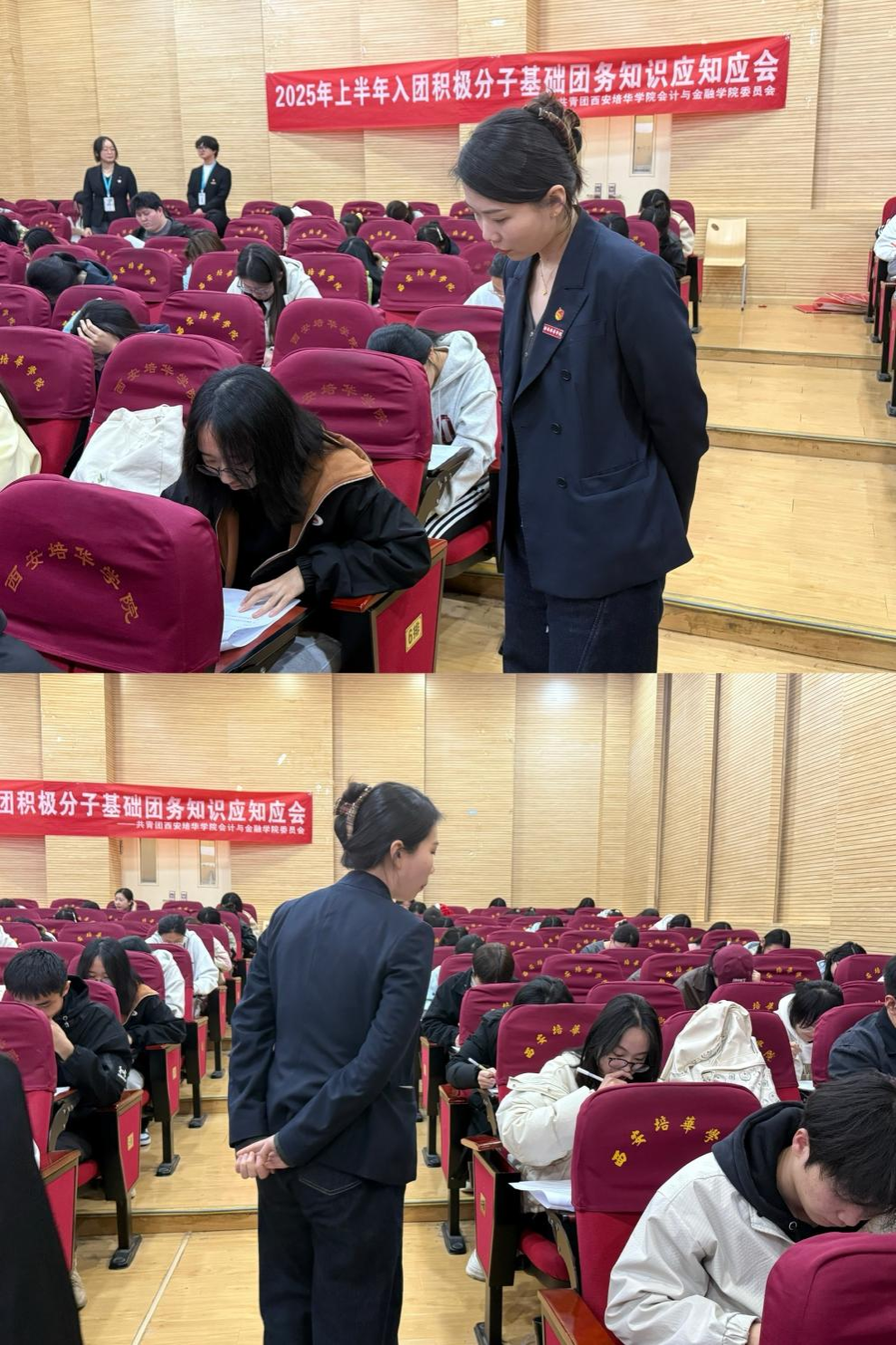 2025年3月20日,会计与金融学院团委在J201组织开展了2025年上半年入团积极分子基础团务知识应知应会。这不仅是一场知识的检验,更是一次思想的洗礼。这场测试使同学们深刻认识到自己对团务知识的掌握程度,进一步增强了思想意识,厚植了积极向团组织靠拢的坚定信念。