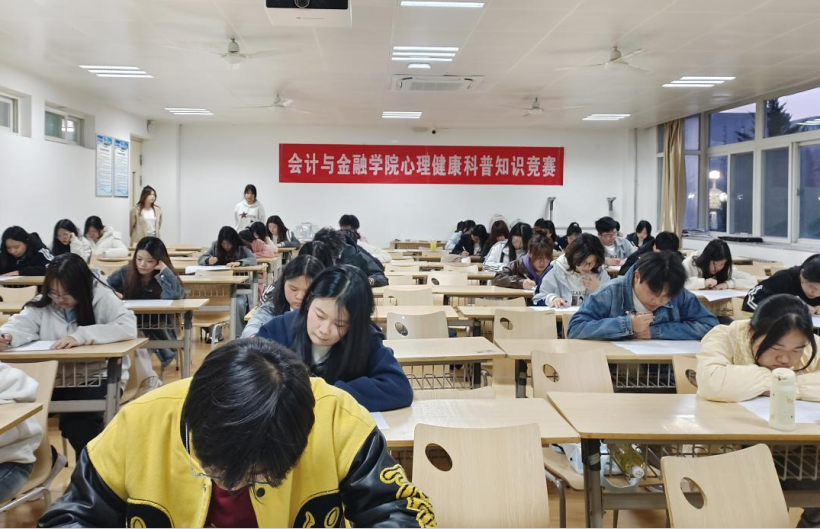为深入普及心理健康知识,提升学生对心理健康的重视程度,3月19日,会计与金融学院心理健康科普知识竞赛在博远楼2211和2212教室成功举办。此次活动吸引了众多学生积极参与,为校园心理健康建设增添了新的活力。