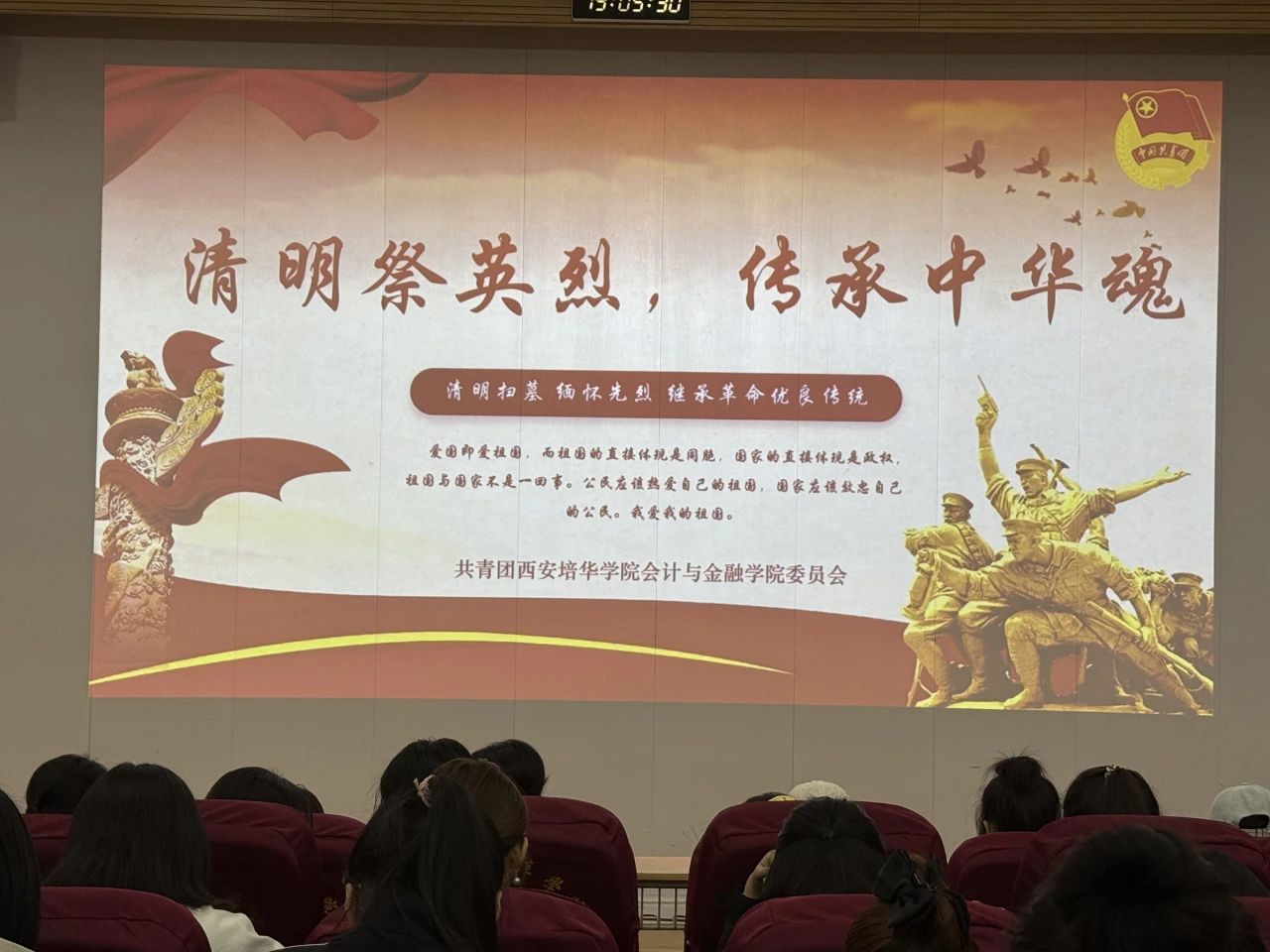 岁至清明,哀思绵长。在这个慎终追远的传统节日,为引导入团积极分子铭记革命历史、传承红色基因,会计与金融学院团委组织入团积极分子于2025年4月2日在J201教室组织开展"清明祭英烈,传承中华魂"清明节主题教育活动。