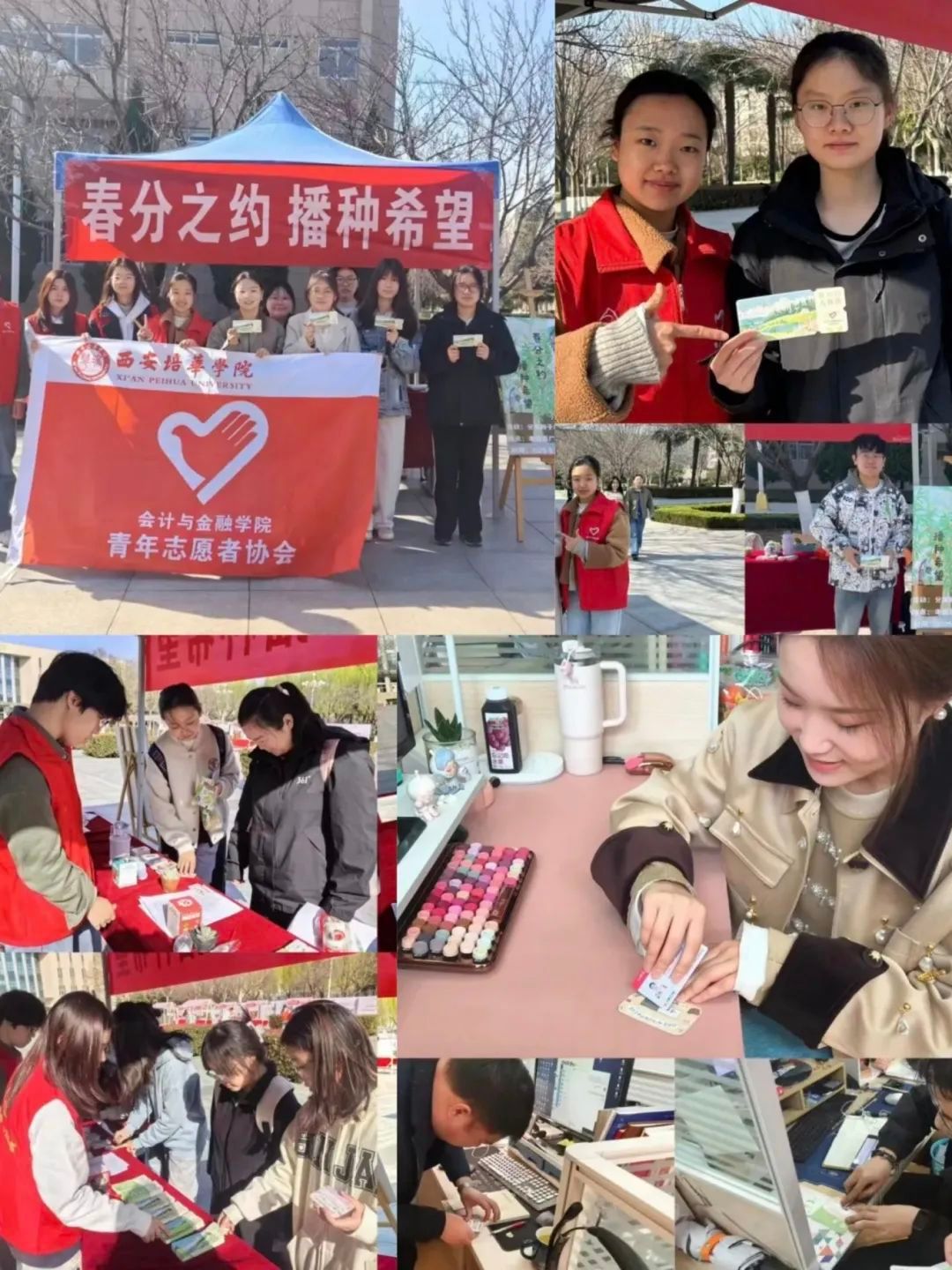2025年 3月20日,会计与金融学院青年志愿者协会开展“春分之约·播种希望”主题志愿活动。活动将趣味互动和环保实践结合,通过春分刮刮乐知识竞答,参与者答对春日诗词、节气知识就能领取种子纸。青协指导老师田晨及众多同学积极参与,志愿者还把活动引入办公室,党委副书记高乐称赞活动形式新颖,激发了师生对传统文化和生态环保的热情。