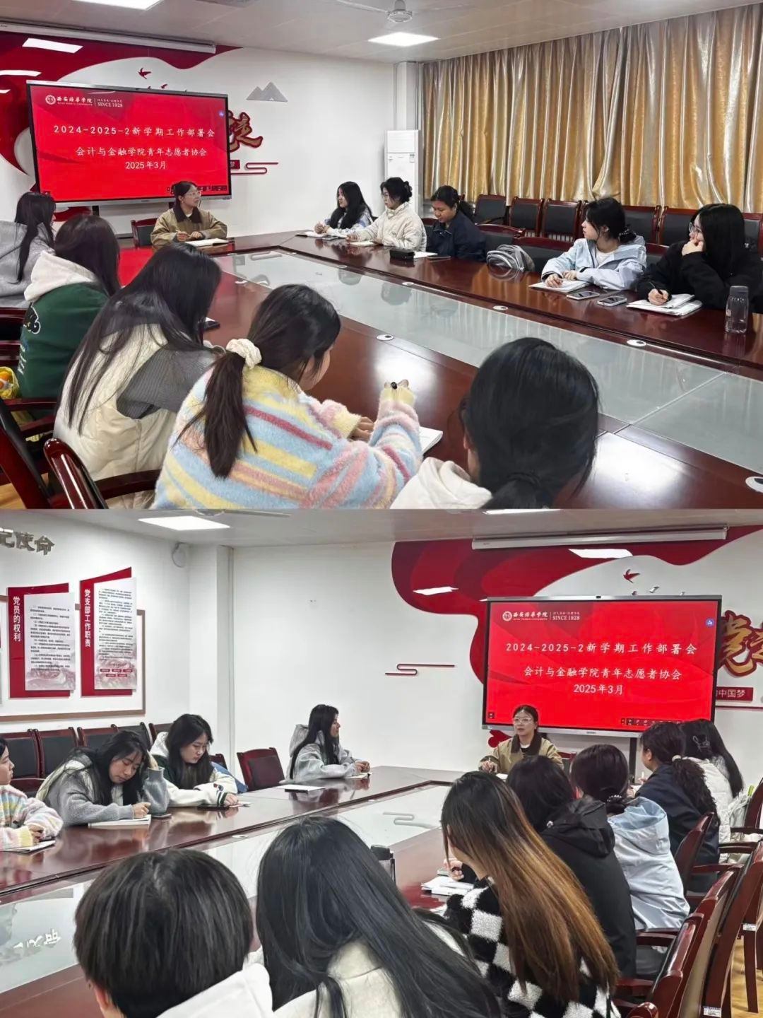 2025年3月4日,会计学2303团支部、会计学2304团支部分别组织旧衣捐赠活动。活动不仅让旧衣得到循环利用,减少资源浪费,还传递了温暖与关怀。通过此次活动,我们深刻体会到环保与公益的重要性,增强了团队凝聚力与社会责任感。