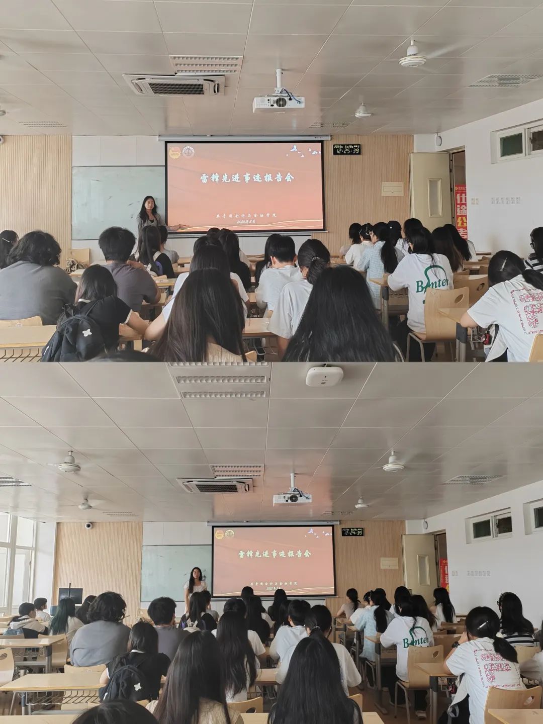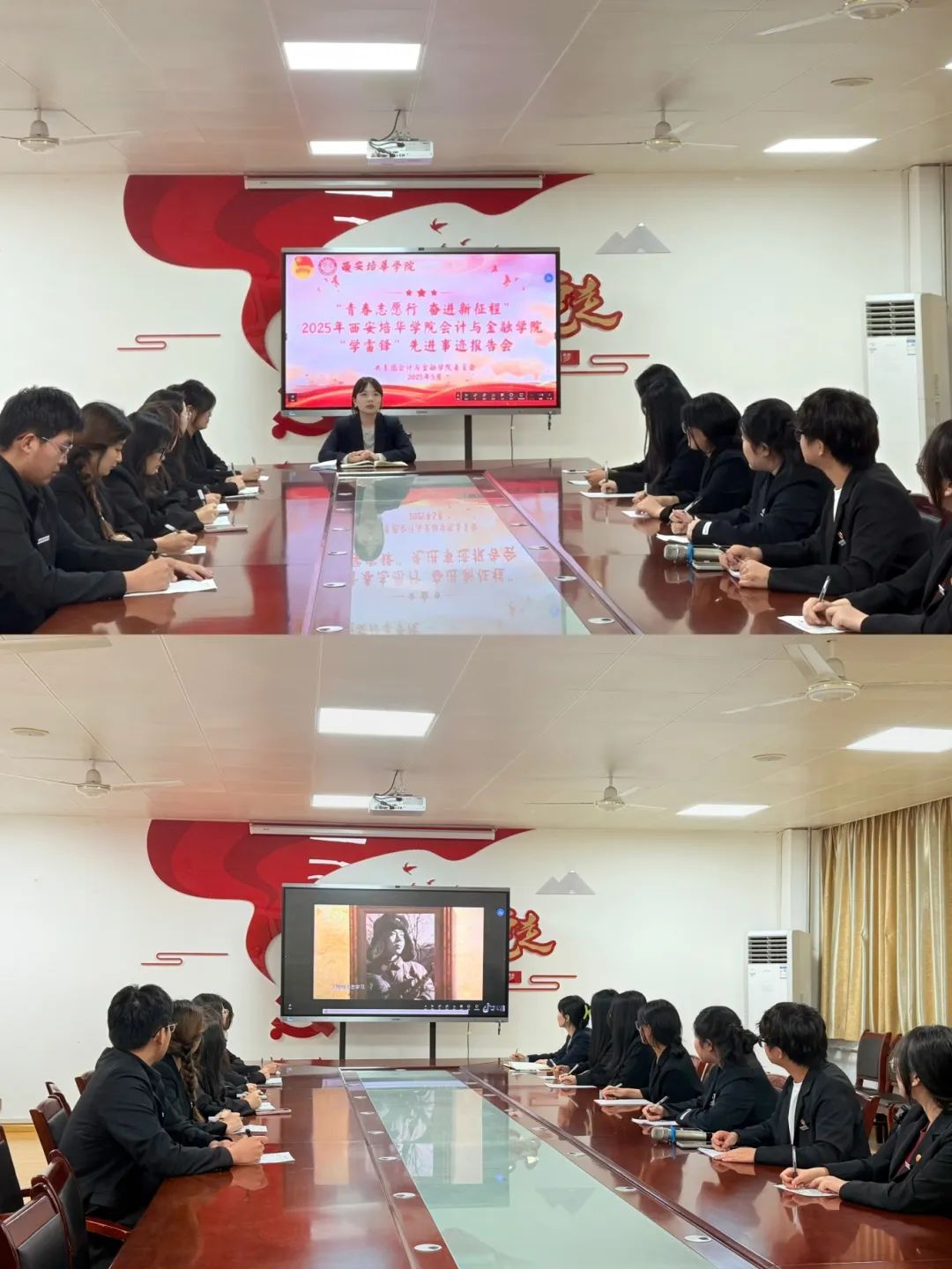团委书记刘经纬带领着团委学生干部们在2115教室共同回顾和学习雷锋同志的感人事迹。教室前方的大屏幕上,雷锋那熟悉而亲切的影像缓缓展现,仿佛将大家带回了那个充满奉献与无私的年代,瞬间唤起了在座每一位同学对雷锋精神那种无私奉献、助人为乐的崇敬之情。在场的同学们认真聆听,他们被这些平凡而伟大的志愿行为深深感染,内心涌动着要向雷锋同志学习的强烈愿望。