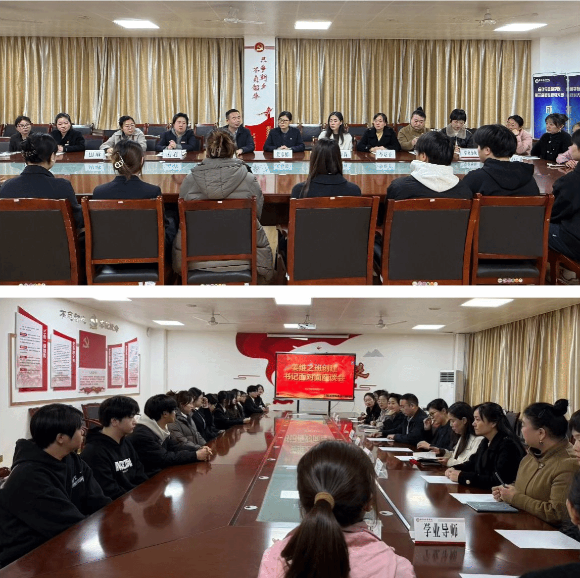 为深入贯彻落实立德树人根本任务,扎实推进“书记面对面” “我为师生办实事”实践活动,精准破解班级建设与学生成长中的难点、痛点问题。近日,会计与金融学院2023电子商务01班 “书记面对面” 活动顺利召开。学院党委书记刘斌、副院长孟君、院长助理吴春娜、系主任、学业导师、任课老师以及辅导员与班级全体同学齐聚一堂,围绕电商订单班特色建设、姜维之班创建、学生全面发展等核心议题,倾听心声、共商对策、凝聚共识,为班级高质量发展赋能增效。
