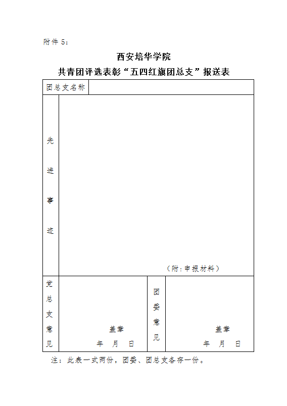 附件5:西安培华学院共青团评选表彰“五四红旗团总支”报送表