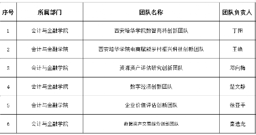 表4西安培华学院会计与金融学院校级创新团队