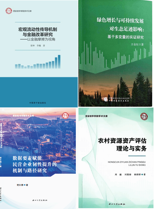 教师在学术著作出版方面成果斐然,2025年度共出版专著4部,紧密对接国家战略,构筑了特色鲜明的研究体系。张坤副教授的专著《宏观流动性传导机制与金融改革研究——以金融摩擦为视角》聚焦宏观金融与制度变革,围绕金融摩擦视角系统阐释流动性传导机制与改革路径,为国家金融政策优化与系统性风险防控提供了理论支持,进一步拓展了学院在宏观金融与金融安全领域的研究深度。王仓红助理研究员独著的《绿色增长与可持续发展对生态足迹影响:基于多变量的实证研究》立足绿色发展前沿,通过实证分析揭示了绿色金融、科技创新等多重变量对生态效率的影响机制,为探索经济增长与环境保护协同路径贡献了重要学术洞见。楚文静副教授独著的《数据要素赋能民营企业韧性提升的机制与路径研究》紧扣数字经济,深入剖析数据驱动企业创新与治理优化的内在机理,为民营企业数字化转型提供实践指南。周嫚副教授、刘雪婷副教授和韩婷婷老师合著的《农村资源资产评估理论与实务》面向乡村振兴,系统构建了农村多元资源价值评估的操作框架,为城乡融合发展提供关键技术支撑。