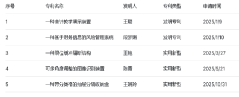 表1:2025年会计与金融学院部分专利成果