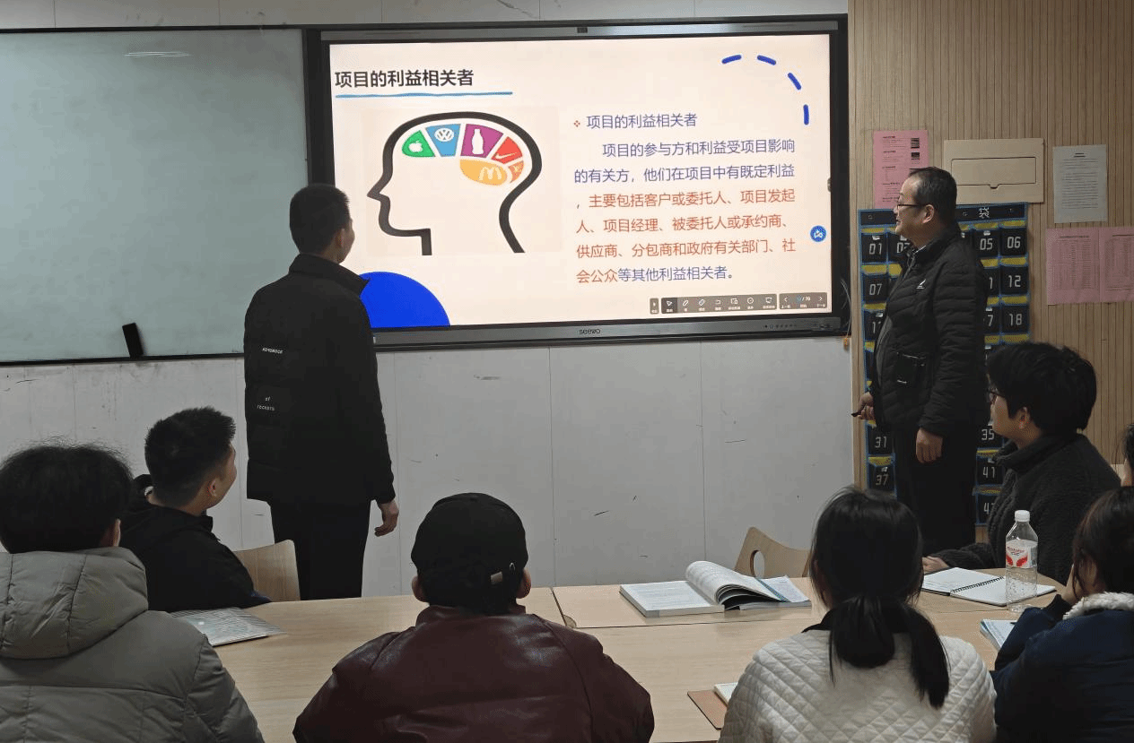 在樊晓军老师主讲的《标准化项目管理》课程中,课堂不再只是知识点的单向灌输,而是围绕“学生为中心、能力为导向、项目为驱动”的思路展开。课程综合运用项目小组讨论、启发式教学等多种方式,把项目管理思维、标准化工作逻辑和岗位实际需求有机融合起来,让学生在“学中做、做中思、思中悟”。与此同时,课程还将国家战略与时代责任、职业道德与规范意识、精益求精与工匠精神等内容自然融入教学全过程,不仅让学生学到知识,更帮助他们树立规范做事、踏实做事、认真做事的职业意识。通过一系列教学设计,课程的知识性、实践性和趣味性得到明显提升,也为学生拓宽视野、增强综合素养、走向未来工作岗位打下了扎实基础。