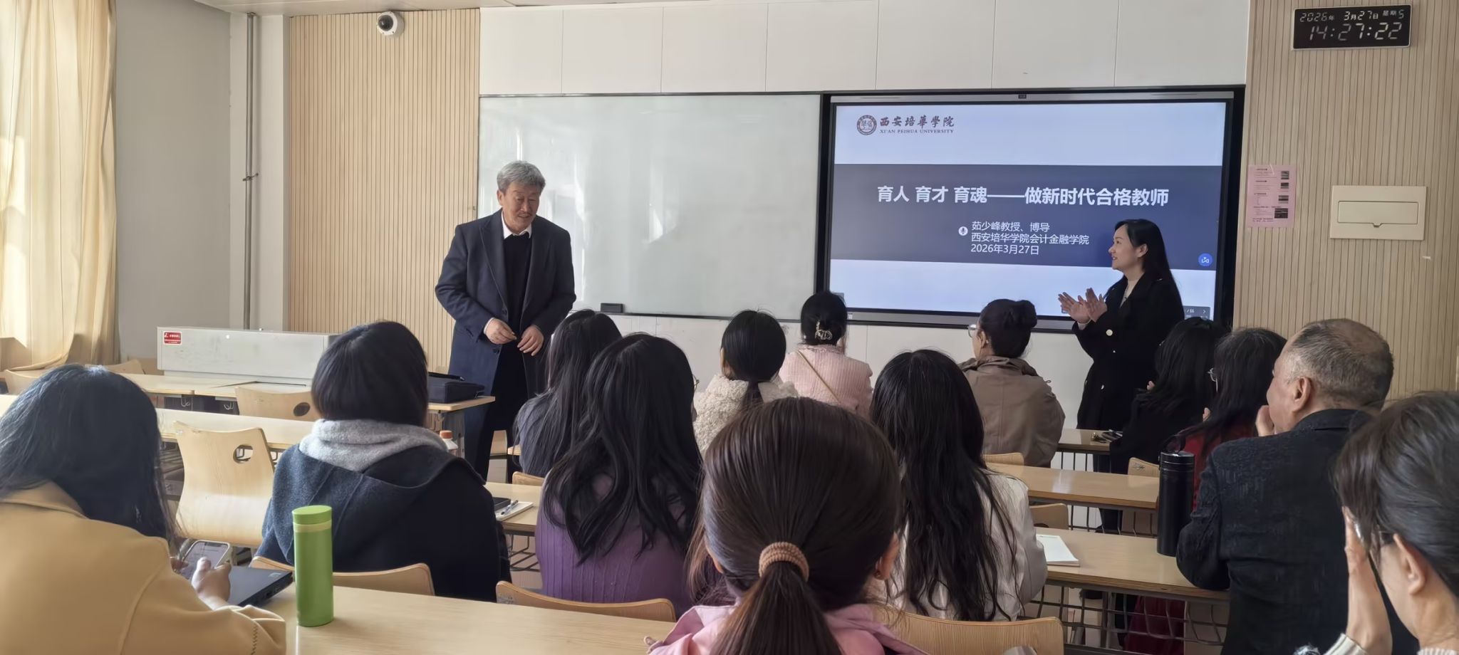为深入贯彻教育高质量发展要求,明确新时代高校教师的使命与职责,助力教师提升育人育才能力,会计与金融学院数智经济系于 2026 年 3 月 27日14:30-16:30在博远楼2301举办题为《育人、育才、育魂 —— 做新时代合格的教师》的专题学术报告。本次报告由会计与金融学院银龄教授茹少峰主讲,数智经济系全体教师参加,讲座由数智经济系李亚子主任主持。