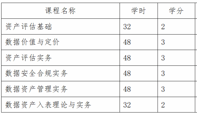本微专业围绕数据资产 “评估 — 定价 — 合规 — 管理 — 入表” 全链条设计6门核心课程,理论扎实、实操性强:
