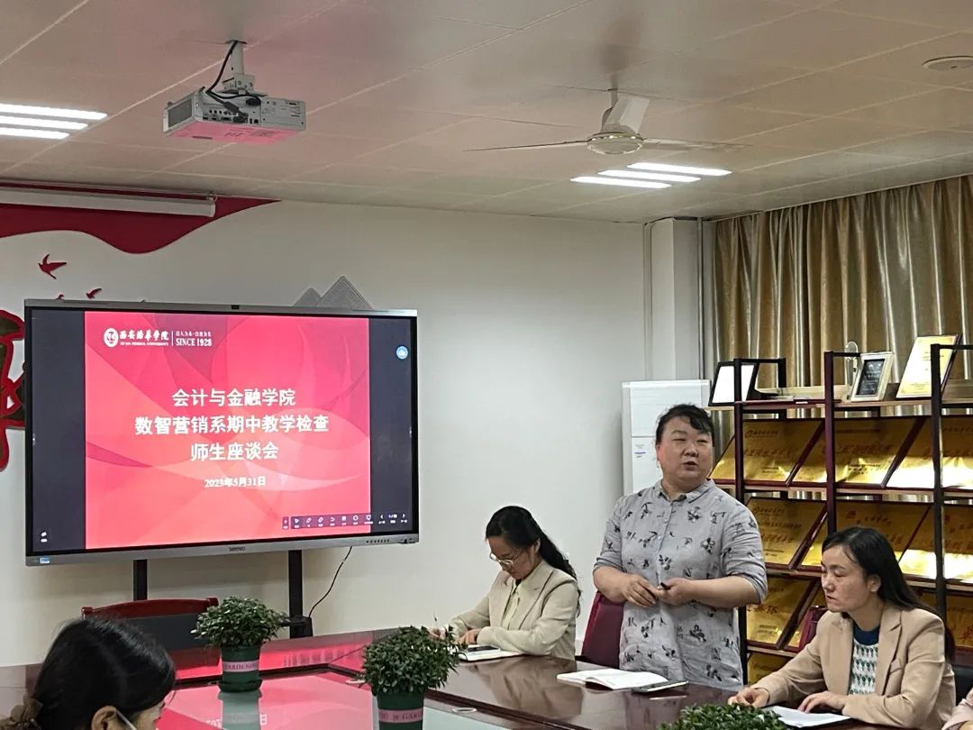 为了解本学期教学动态,监控教学质量和教学计划的有效运行,为后期教学工作提供依据和方向,保证专业教学目标的达成度。2023年5月31日中午会计与金融学院数智营销系在2115会议室召开师生座谈会,会议由市场营销专业吴振荣老师主持,数智营销系全体教师及市场营销、电子商务专业部分学生代表参加了本次会议。