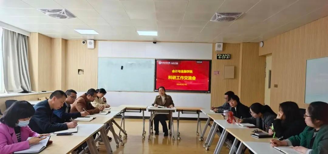为推动科研工作提质增效,营造科研环境和氛围,形成学术交流常态化,激发教师科研潜力,会计与金融学院于2024年3月19日下午16:00在2201智慧教室召开了本学期科研工作交流会。参与此次会议的人员有副院长丁阳、各系主任、十个科研团队负责人和教学科研干事,本次会议由会计与金融学院副院长丁阳主持。