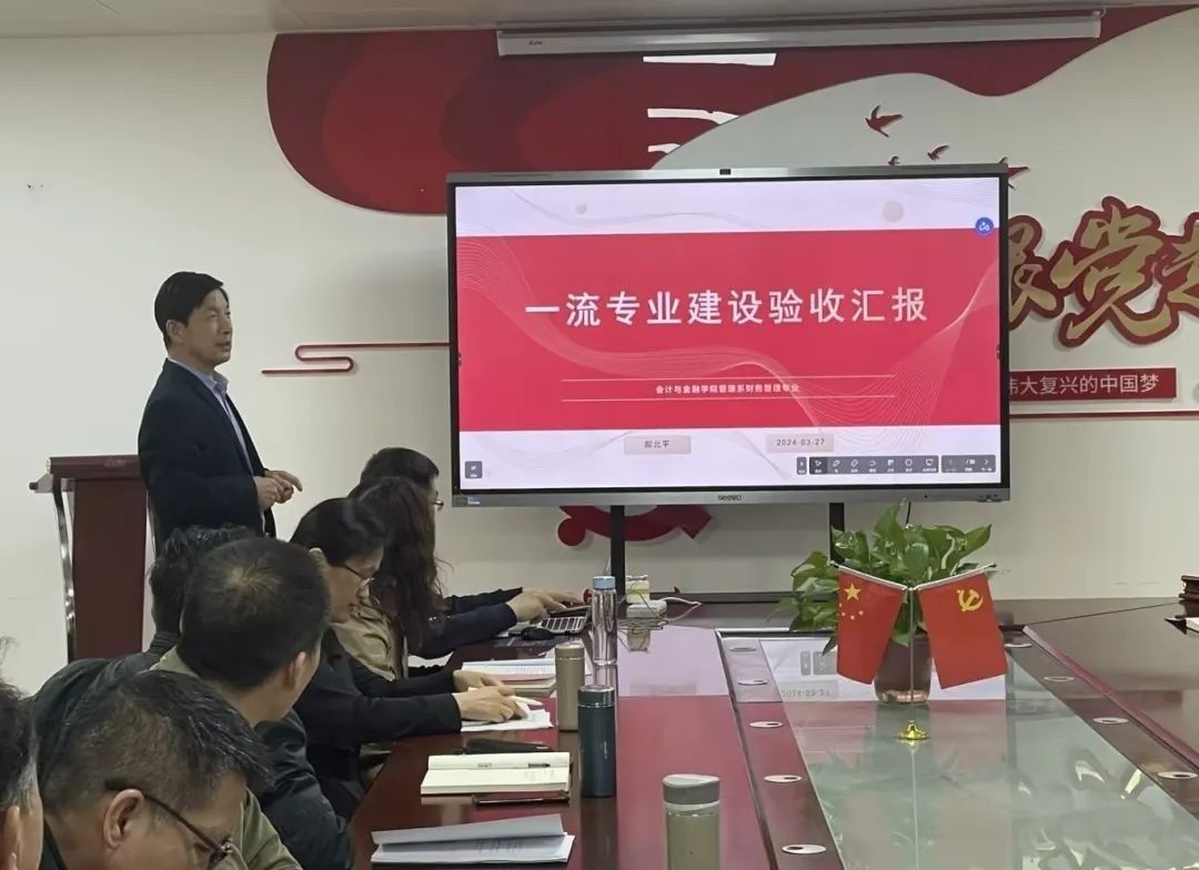 会议前半部分,由我院国一流会计学专业,省一流财务管理专业、电子商务专业,校一流市场营销专业对标“陕西普通高等学校一流专业建设标准(本科)”中的8个一级指标,21个二级指标,依次进行了一流专业结项验收汇报。