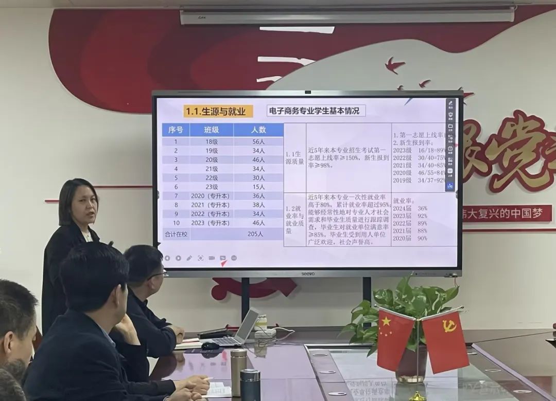 石妍老师对标一流专业建设8个指标点,汇报了电子商务专业建设情况,并指出对标指标存在的问题主要集中在师资、就业招生数据、麦可思反馈数据这几个方面,目前专业的主要任务在一流专业结项材料的整理、专业建设汇编和专业招生宣传工作。