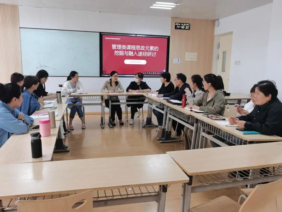 管理学教研团队则以“管理类课程思政元素的挖掘与融入途径研讨”为主题,探讨了如何在管理类课程中深入挖掘思政元素,并将其有效融入教学过程。张慧老师作为团队领导,对团队的研究成果进行了梳理和总结。她强调,要深入挖掘管理类课程中的思政资源,通过创新教学方式和手段,引导学生树立正确的价值观和人生观,培养具有创新精神和实践能力的管理人才。