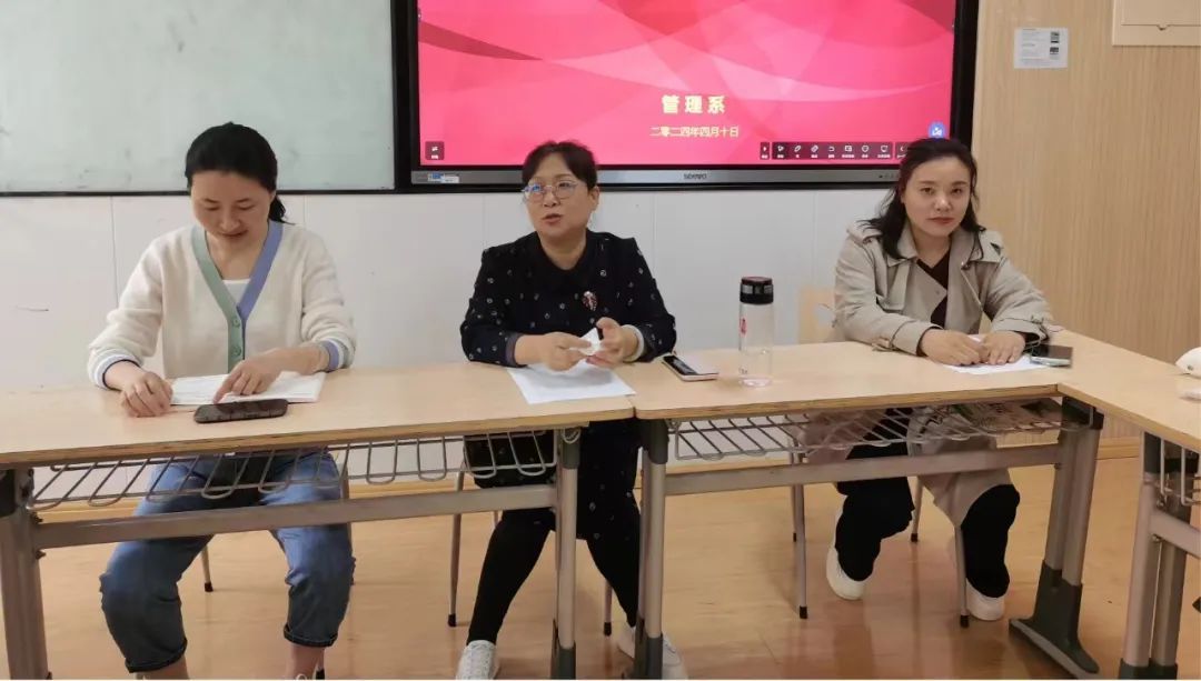 为进一步推动思政教育与专业教学的深度融合,管理系的两个教研团队于4月10日在2302教室召开了教研会议。本次会议由财务管理教研团队负责人郭琳琳老师和管理学教研团队负责人张慧老师分别主持,管理系主任李永红老师及两个教研团队全体教师参加。