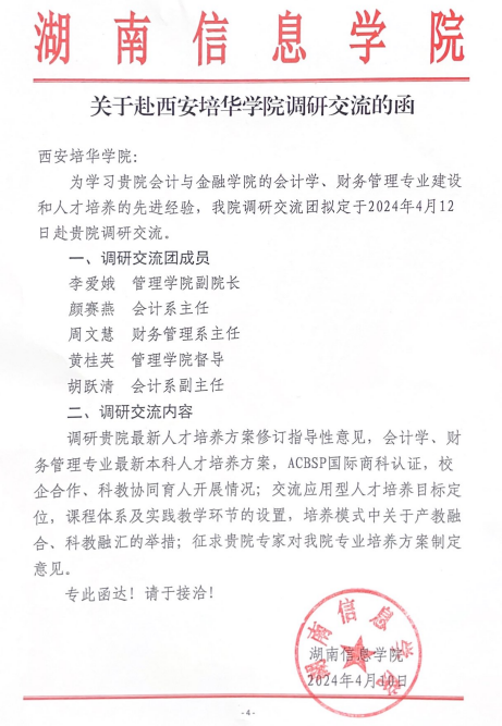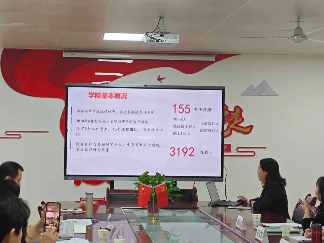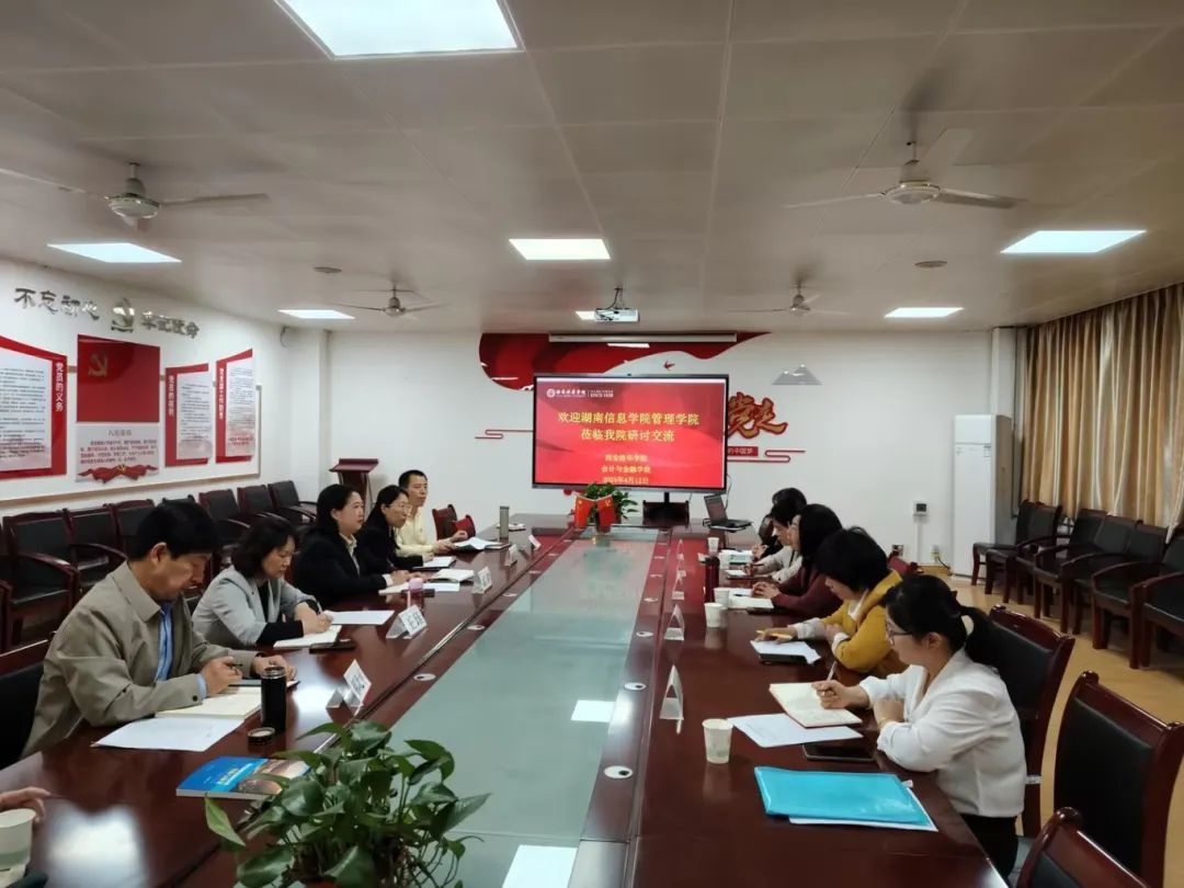 人间四月芳菲尽,山寺桃花始胜开。为学习我院会计学、财务管理专业建设和人才培养的先进经验,湖南信息学院管理学院调研交流团于2024年4月12日下午14:30赴我院开展研讨交流系列活动。调研交流团成员由管理学院副院长李爱娥,会计系主任颜赛燕,财务管理系主任周文慧,管理学院督导组长黄桂英,会计系副主任胡跃清组成,我院教学副院长孟君、综合办公室主任周嫚,会计系主任王小毅,会计学专业带头人王珏教授,财务管理专业带头人郝北平教授,ACBSP专业认证办公室主任覃忠教授,院督导组组长刘心占负责接待工作。