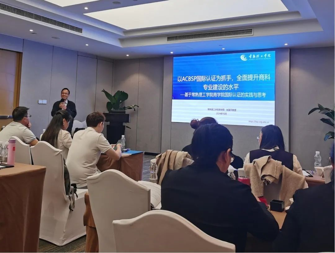 常熟理工学院商学院张国平教授为与会者带来了题为“以ACBSP国家认证为抓手,全面提升商科专业建设的水平——基于常熟理工学院商学院国际认证的实践与思考”的经验分享报告。张教授结合常熟理工学院商学院的实际案例,详细阐述了国际认证在提升商科专业建设水平方面的作用和意义。张教授指出,国际认证不仅是对学校教学质量的认可,更是推动学校教学改革和发展的重要动力。通过国际认证,学校可以借鉴国际先进的教育理念和教学方法,提升自身的办学水平和竞争力。同时,国际认证还可以促进学校与国际同行的交流与合作,拓宽师生的国际视野。张教授的分享报告引起了与会者的强烈共鸣,大家纷纷表示将借鉴常熟理工学院商学院的成功经验,努力推动自身学校的国际认证工作。