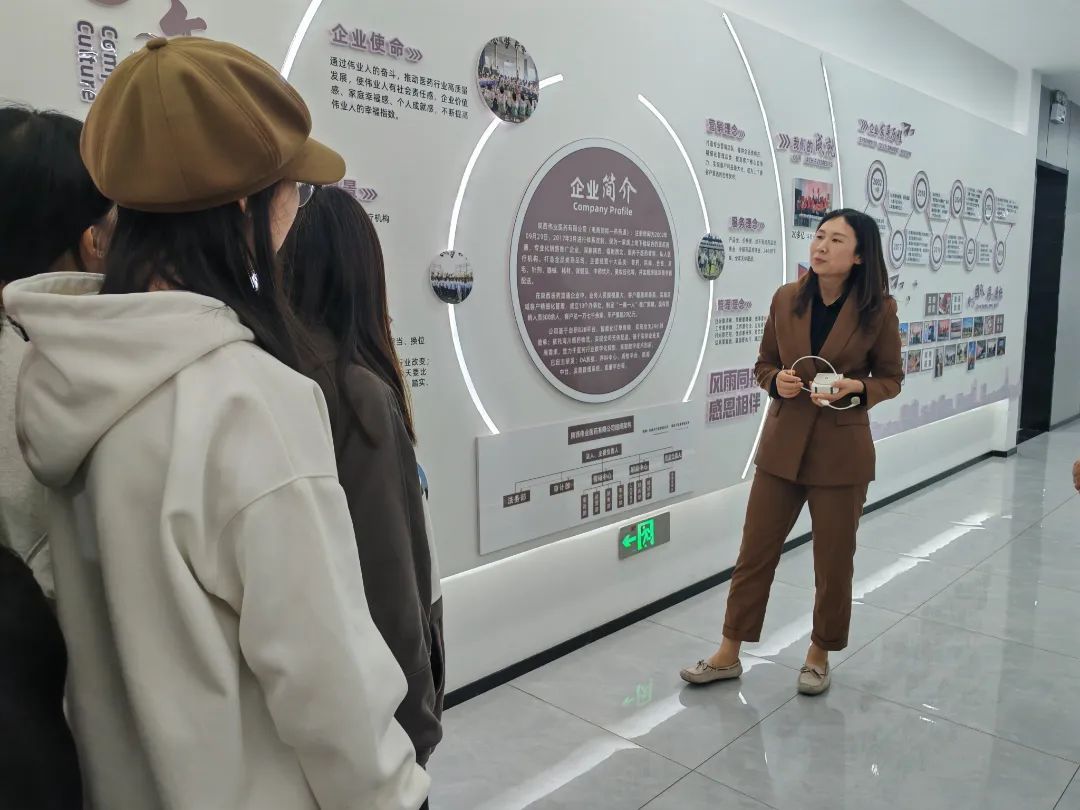 秋高气爽的十月,为深化产教融合,构建校企协同育人机制,顺利开展专业实习,助力学生高质量就业,数智经济系组织市场营销和电子商务专业的学生对专业实习基地进行走访。2024年10月24日下午14:00数智经济系师生前往陕西伟业医药有限公司进行参观学习和座谈交流。参与本次活动的有会计与金融学院副院长丁阳、市场营销专业带头人秦选龙、市场营销专业实习负责人杨艳萍、教师代表阿茹罕及10名学生。