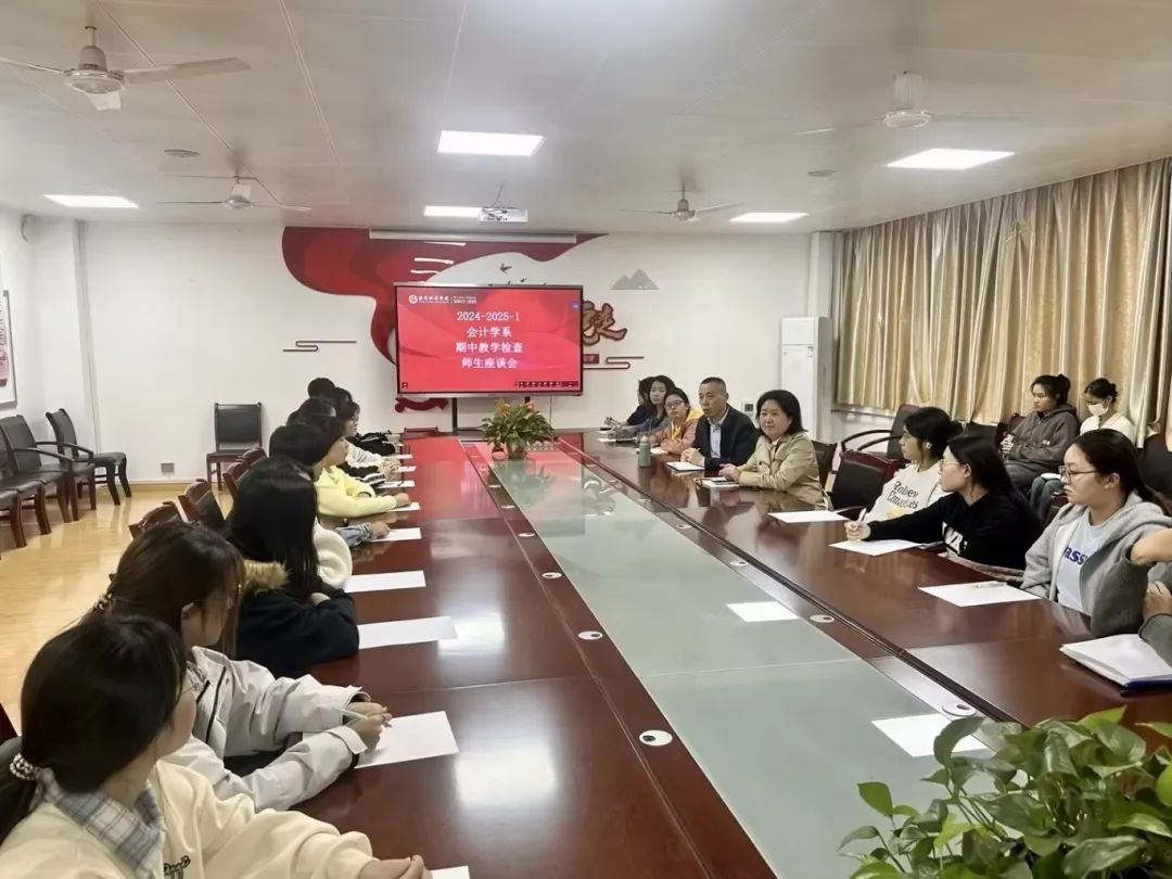 为了详细地了解会计学专业学生在本学期学习方面遇到的困难,掌握学生合理诉求,收集学生对课堂教学方面的意见和建议,及时掌握学生在校学习动态,2024年10月29日,西安培华学院会计与金融学院会计学系于下午14时30分,在2115会议室召开了2024—2025学年第一学期期中教学工作座谈会。本次座谈会由系主任王小毅老师主持,参会老师代表有会计学系马艳、侯雪晨、王璐等教师代表,参会学生是会计学专业大一至大四各班学生代表。