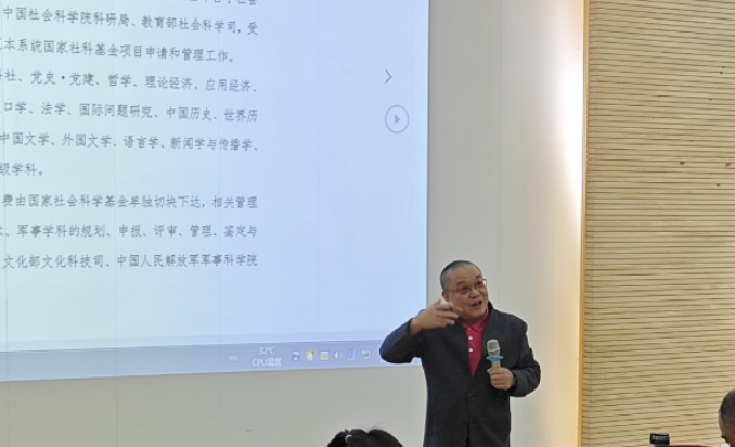 朱教授结合自身丰富的科研经验和成功案例,围绕国家社科基金项目的申报流程、选题策略、论证方法、申报书撰写技巧等方面进行了全面而深入的讲解,并深入剖析了国家社科基金项目的申报要点和评审标准。首先,朱教授强调了选题的创新性和现实意义至关重要,要紧密结合当前社会经济热点问题和学科发展前沿,找准研究的切入点。他们指出,一个优秀的项目提案不仅要有明确的研究目标,还要展现出研究的深度和广度,以及对社会的实际贡献。其次,他讲述了选题上如何体现问题意识和时代精神,如何精炼语言表达和合理布局,以及如何在较长时间内保持钻研精神和持之以恒的意志力等宝贵经验。