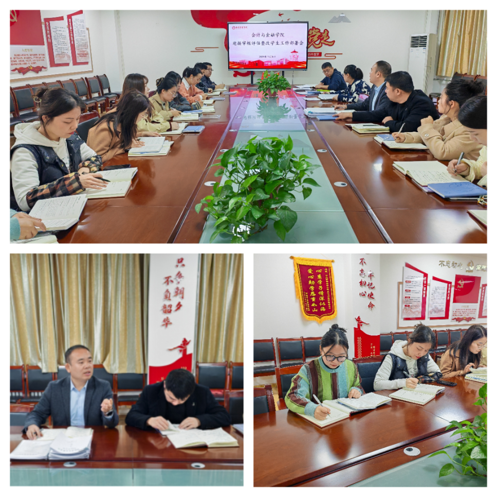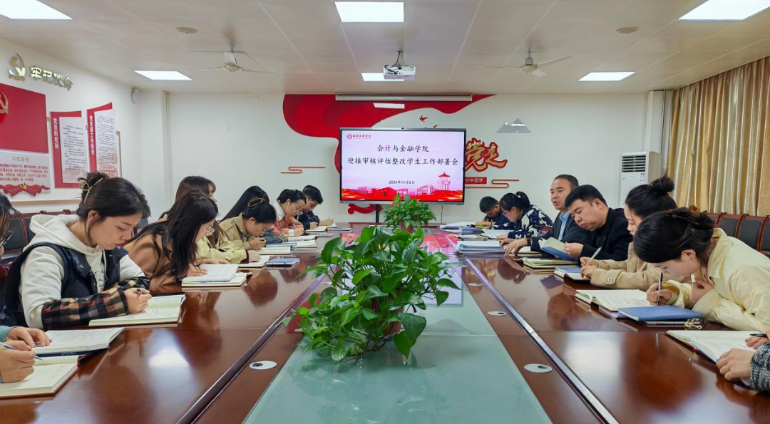 2024 年 11 月 5 日 上午,会计与金融学院召开迎接审核评估整改学生工作部署会。学院党委书记兼行政副院长刘斌、党委副书记高乐以及全体辅导员出席此次会议。