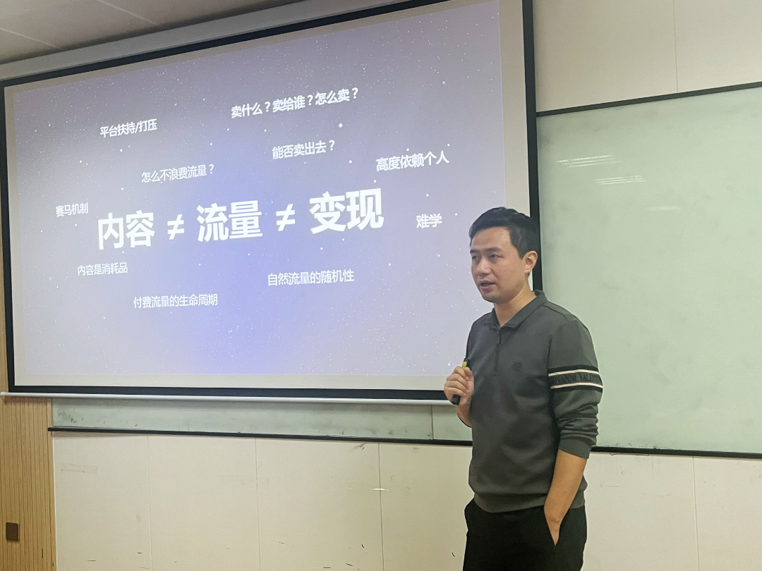 在后续的培训环节,翁总结合行业最新动态及后期学生的真实项目,详细讲解了短视频岗位的职能分工,并对抖音平台近期的规则变更做出深度解析。他从文案撰写、拍摄与剪辑技巧、内容策划、用户分析到账号运营,带领学生们全方位了解短视频从创意到发布的整个流程。特别强调了行业中内容原创性和数据分析能力的重要性。随着平台规则的变化,短视频内容需要更注重用户体验、平台偏好和流量机制。并结合典型案例给学生们提供了极具操作性的建议,帮助大家更深入地理解短视频内容策划的核心要素。