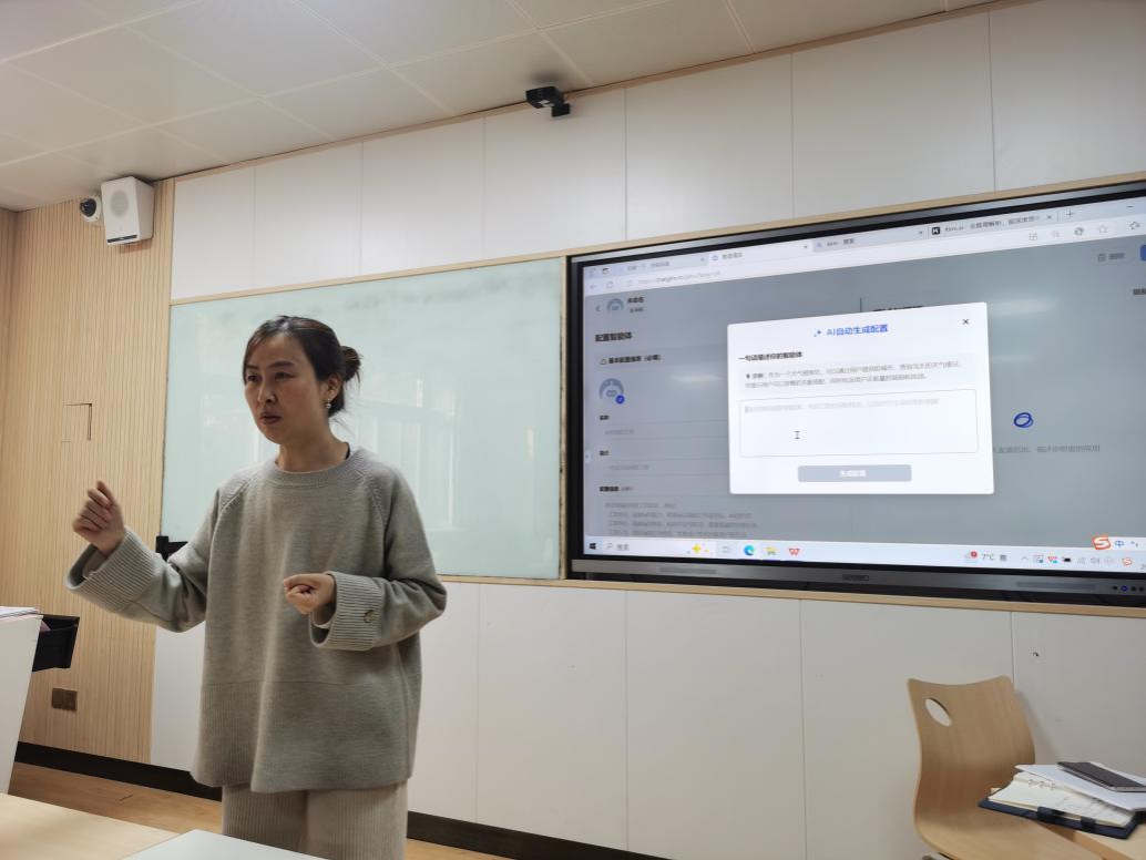 活动于下午2:30正式开始,由会计与金融学院主办数智经济系,吸引了全校20名教师参加,沙龙由会计与金融学院的两位老师阿茹罕和秦芳担任主讲人,王艳老师担任主持人。 王艳老师强调了教育数字化转型的重要性,以及GAI(生成式人工智能)在教育创新中的潜在作用。秦芳老师在分享中详细介绍了GAI赋能教学创新的途径和方法,她的讲解深入浅出,为在场的教师们提供了新的教学思路。