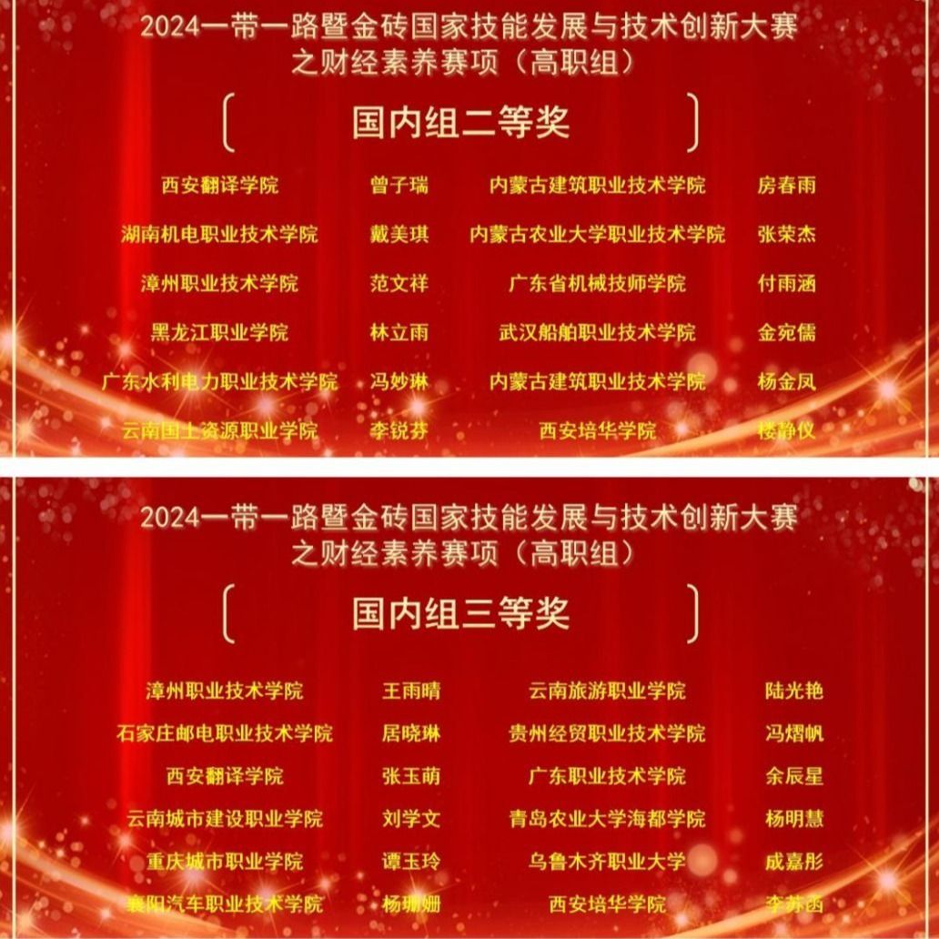 西安培华学院会计与金融学院会计学师生在2024一带一路暨金砖国家技能发展与技术创新大赛之第二届财经素养赛项总决赛中喜获佳绩!