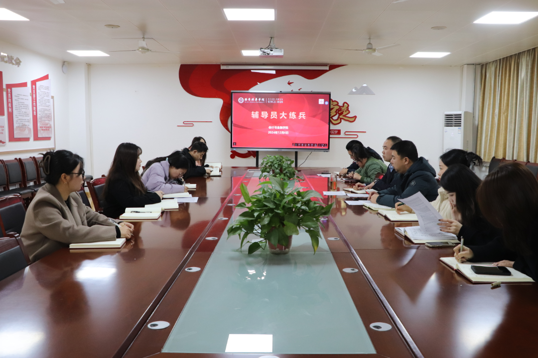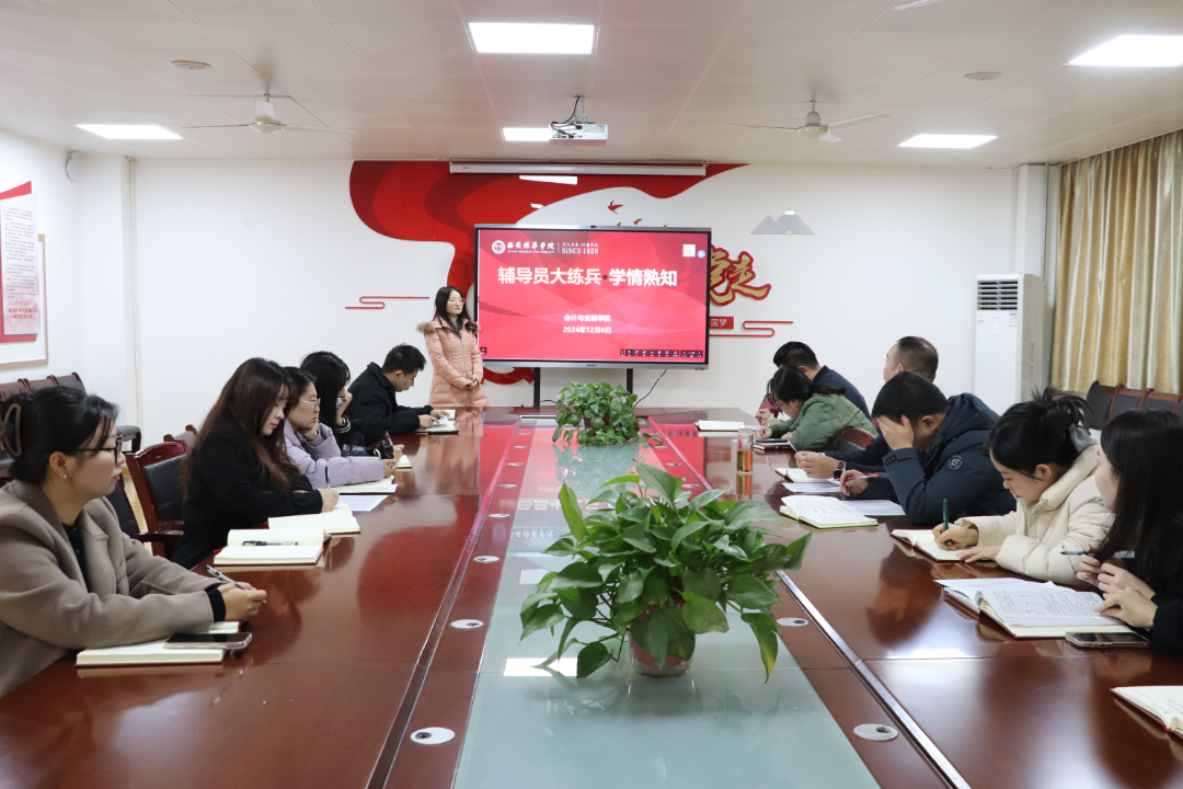 2024年12月6日,会计与金融学院在2115会议室举行了第六期辅导员大练兵,活动内容由四个部分展开,分别是学情熟知、案例分析与奖助学金评定政策再学习、集体备班会以及活动总结。