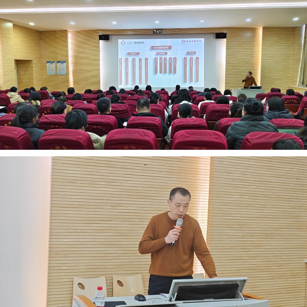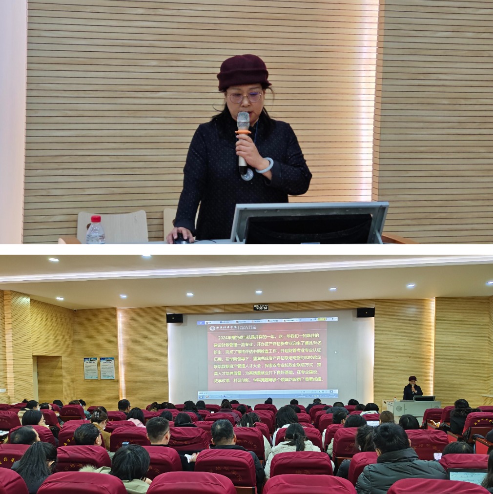 科研副院长丁阳则聚焦于学院的科研和申硕工作,她详细介绍了学院在科研项目申请、学术论文发表、科研团队建设等方面的成就,强调了科研与教学相结合的重要性,鼓励教师们在保证教学质量的同时,积极参与科研活动,提升学院的整体学术水平。申硕方面,学院始终坚持以一流专业建设为核心,以师资队伍建设为抓手,以高质量科学研究项目为重点,以人才培养和条件保障为支撑,全面推动申硕工作的深入开展,本年度在学校领导和各部门的大力支持下我院取得了阶段性的进展和成效。2025年我院将以申硕工作为重点,以提升教师科研能力为抓手,解放思想、开拓创新、科学规划、真抓实干、坚定不移地贯彻落实好学校各项申硕任务,在申硕工作上取得突破性成效。