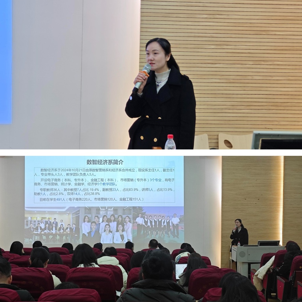 数字经济系主任李亚子随后发言,她总结了数字经济系在推动数字化转型和创新方面的努力。她指出,随着数字经济时代的到来,数字经济系紧跟时代步伐,不断更新教学内容,加强与行业的联系,为学生提供了丰富的学习资源和实践平台。她还提到,数字经济系在大数据分析和人工智能应用方面的研究取得了突破性进展,为学院的科研工作增添了新的亮点。