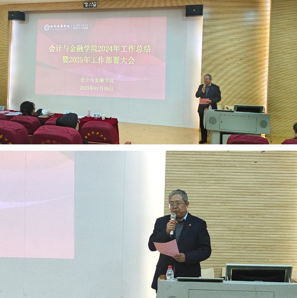 在岁末之际,会计与金融学院举行了2025年度工作总结大会。本次大会于2025年1月8日下午14:30在博远楼J201召开,此次会议汇聚了会计与金融学院院长赵选民、党委书记兼行政副院长刘斌、副院长孟君、副院长丁阳、党委副书记高乐以及全体教职工,会议由会计与金融学院党委书记兼行政副院长刘斌主持。大会旨在加强内部沟通,提升教学质量,回顾过去一年的成就与挑战,展望新一年的发展蓝图。