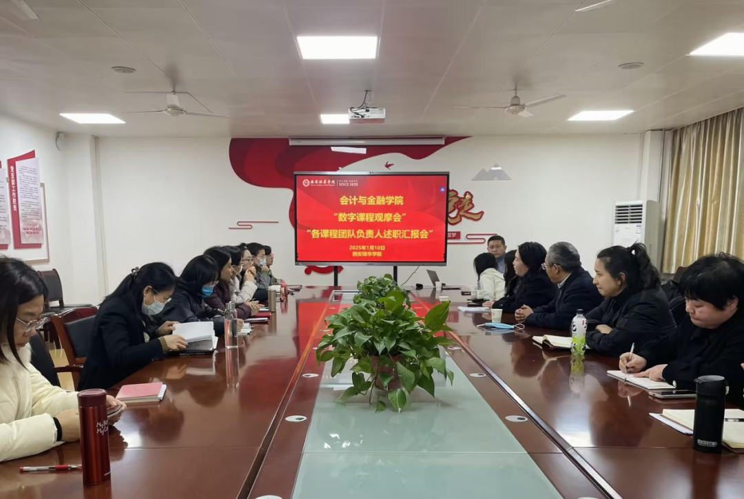 为进一步推动现代信息技术与教育教学深度融合,实现更大范围优质教育资源开放与共享,促进我院教育教学方法和手段改革创新,塑造“人工智能+”高等教育新生态,打造“金课”教学团队。2025年1月10日(星期五)下午14:30-17:30,会计与金融学院在博远楼2115会议室召开了“数字课程观摩会”及“各课程团队负责人述职汇报会”,厦门网中网软件有限公司陕西省区域经理焦晓龙,课程实施部经理赵淑芳、任成园,会计与金融学院院长赵选民,教学副院长孟君,各系主任,副主任,各课程团队负责人出席本次会议。会议由教学副院长孟君主持。