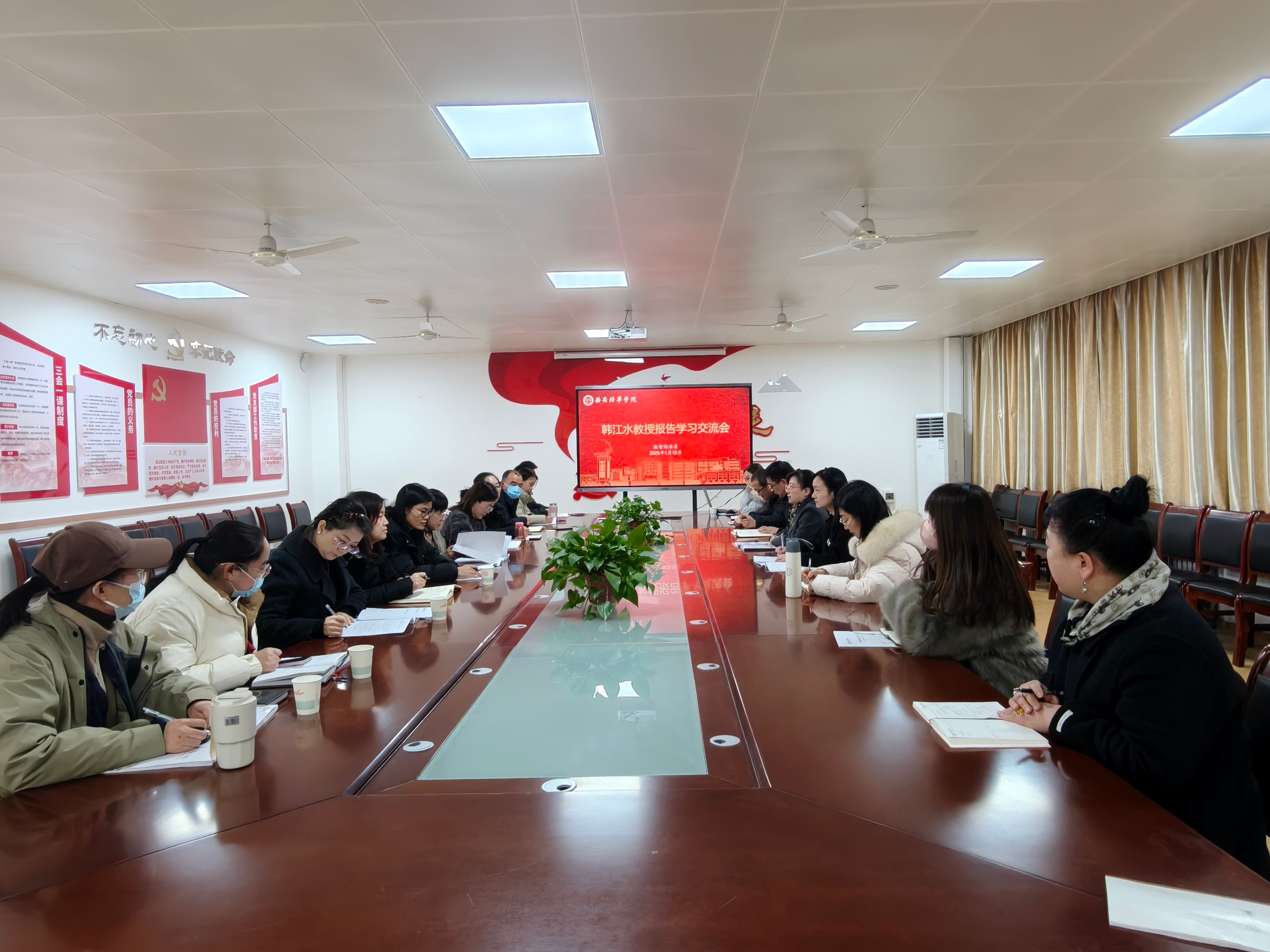 为提高教师思想认识,扎实做好审核评估整改工作,2025年1月15日,数智经济系于2115会议室成功举办了“韩江水教授报告学习交流会”。数智经济系主任李亚子、副主任涂玉侠以及全系教师共同出席了此次重要会议。
