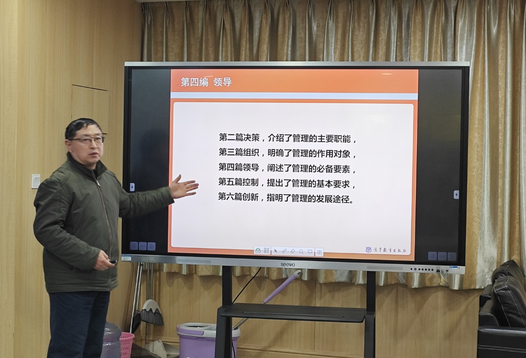 李东老师试讲了《管理学原理》课程中管理的职能与性质,其中管理职能循环图是讲授重点。在管理职能循环图决策是计划的前提,计划是决策的逻辑延续,组织、领导和控制旨在保证决策的顺利实施,创新贯穿于各个管理职能和各个组织层次之中。