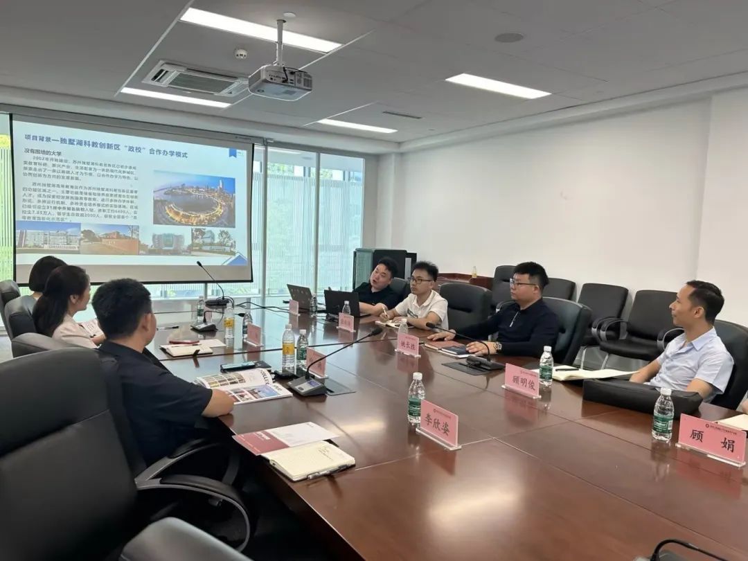 7月18日上午专项小组抵达苏州工业园区,共同商讨合作育人事宜;苏州工业园区以“高端人才为引领、合作办学为特色、协同创新为方向”来推进人才接力培养和引进,已吸引中科大、中国人民大学、新加坡国立大学等30余所中外知名院校入驻,获批全国首个“高等教育国际化示范区”。园区产业学院姚长胜主任、助理张雨停热情接待老师们交流考察。