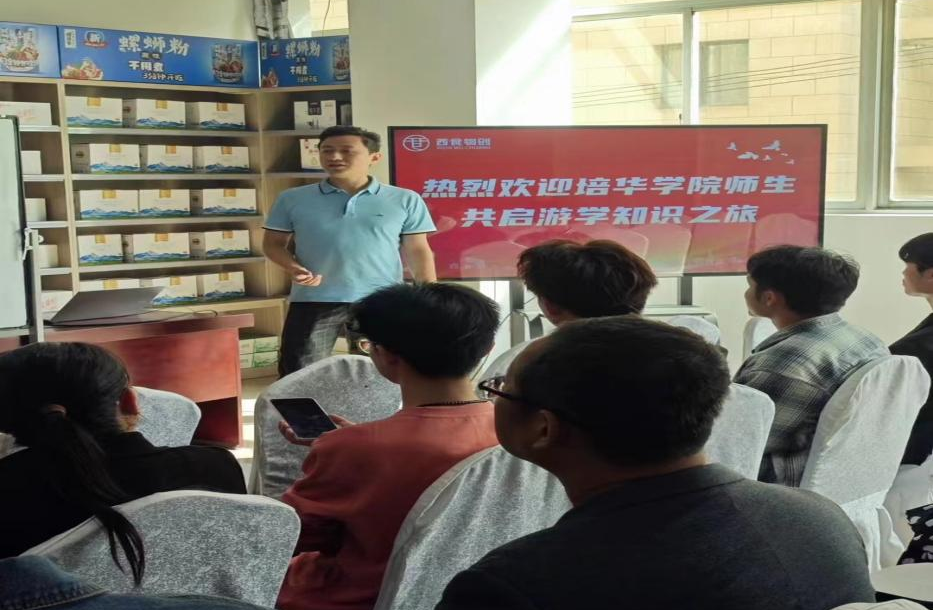 2024年10月9日下午,西安培华学院创新创业教研室组织开启了一场意义非凡的企业游学活动,由杨柏欢老师带队师生11人前往西食物创新媒体电商基地,展开了创新创业、电商营销的学习与交流之旅。