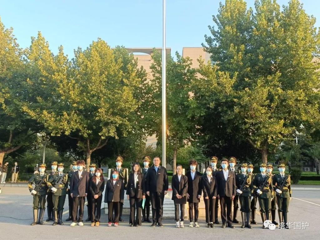 2022年10月17日,国旗护卫队在南门举行每周的升旗仪式。到场的嘉宾有:医学院党委书记兼行政副院长王平安,人文与国际教育学院徐召卡,人文与国际教育学院何欢,以及红十字会和第二课堂项目办组织代表的到来。伴随着《义勇军进行曲》,五星红旗迎着清晨的第一缕阳光,在国歌声中冉冉升起,在场所有人都面向国旗,庄重肃穆。“时代在变,年轻的面孔也在变,但爱国和追求进步的目标永远不变,红色基因的底色永远不变。始终奋进在时代前列的精神永远不变。"国旗护卫队的队员们将与时代一起,向阳生长。少年眼中有光,未来终归点亮。